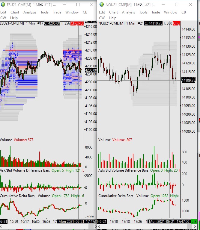 Hi there, I've checked I have the correct permissions. My ES market depth indicator works well and I have it set up to how I like. I duplicated the chart and then changed the market to the Nasdaq emini and there is no data displayed at all. I understand they have different amounts of contracts traded and resting on different levels, but I would have thought that there wasn't anything in the market depth settings that would eradicate how the data is now displayed. Also the levels being displayed (or not on the Nasdaq seems quite narrow in comparison to the ES. I have 400 levels selected (a random number but a large one) and the Nasdaq doesn't display anything near this. Again I know the market is thinner but there is no activity showing up at all. I have included screenshots of the two charts to show what I mean, along with screenshots of my market depth set up. Any help to figure out what has gone wrong would be greatly appreciated. Regards, Bootsy |