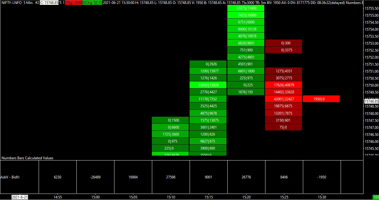 Hi In the attached image, I used both Number Bars and Number Bars calculated values studies on the feed from Global Data Feeds. 1 lot size for symbol NIFTY-I.NFO, is 75. So, any volume related information on the display should be multiples of 75. But in both the above studies, not all volume related information are multiples of 75. I had even set Intraday Data Storage Time unit as 1 Tick, and Number of Days to load as 2. For example, Bid Vol|Ask Vol for 15751.00 at 15:25 is 1275|4351, where 4351 is not a multiple of 75. The attached image is only an example and is not of live trade data, but above mentioned volume inaccuracy is same in live trade data too. Could you please let me know, how it could be fixed. Thanks |