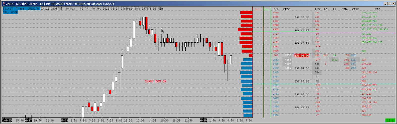 Yes, you are correct. The same information can be displayed with a Chart DOM as well, but it is not possible to not display certain columns and info when the Chart DOM is active, although it can be done with the Show Market Data Columns. I would like to display DOM data columns without the additional trading functionality and without the two columns (buy/sell) that is not possible to disable on the DOM. When using certain charts and studies, it is also very handy to not display trade and order related information (lines, labels) on the chart, to keep the chart clean. This is also not possible when displaying a Chart DOM, because if we disable trading using the Trade -> Chart Trade Mode On/Off function, it automatically hides the Chart DOM as well. Both the Chart DOM and the Show Market Data Columns functions work perfectly for me and I am able to achieve what I want with them. I am just looking for to be able to automatically scale a chart based on the DOM data rows height, when using the Show Market Data Columns - similar to how it works, when the Chart DOM is displayed. Using the Auto Scale Chart DOM function. |