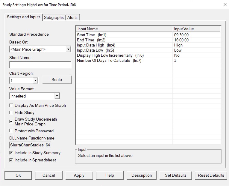 SC version 2270-64 US equities data feed I must have somehow corrupted my chart. I used to have `High/Low for Time Period` displayed on a 5min bar period for US equities. Worked fine for weeks. This morning I'm noticing it is not rendering the study anymore. * the study still exists in my chart studies list * the study is not hidden * if I click Edit -> Delete and Download All Data, the study will reappear, but is missing data in certain places * if I switch symbols or hit Edit->Reload and Recalculate, the study disappears again. What could be going on? |