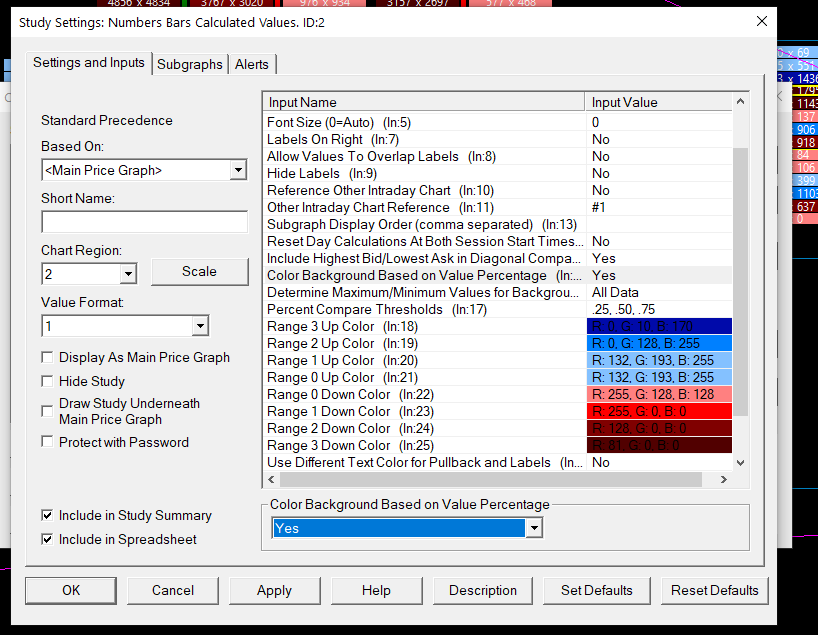 Hello, I am having trouble with the number bars calculated values 2 indicator not painting the proper color based on volume %. A 63 350 volume bar and a 8223 are both painted the same color. I am attaching a screenshot of how the indicator looks like as well as the settings I am running currently. How do I resolve this? |