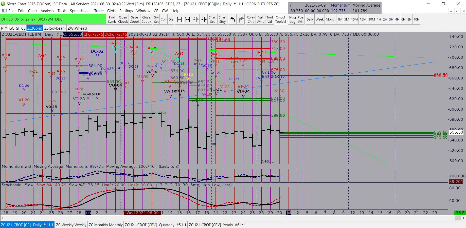 Hi, I rolled over my daily chart of ZCN21 to ZCU21 contract. the chart did not keep ZCN21's historical data. see attached screen shots. Please advise on how to keep historical data of previous contract. It is a first time that such issue occurs. |