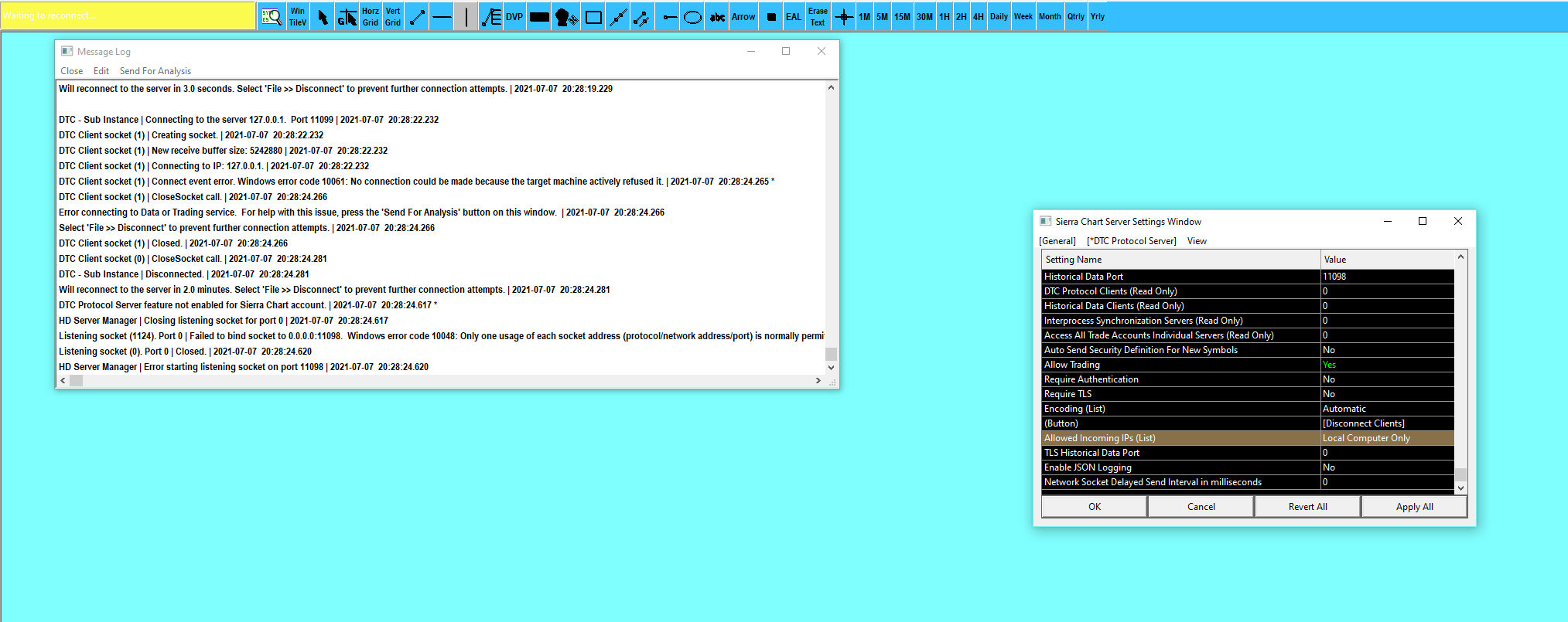 You need to update Sierra Chart to the latest version. There is a notice about this when you start Sierra Chart. (Help >> Open System Message in Browser) Instructions: Software Download: Fast Update Sierra Chart Support - Engineering Level Your definitive source for support. Other responses are from users. Try to keep your questions brief and to the point. Be aware of support policy: https://www.sierrachart.com/index.php?l=PostingInformation.php#GeneralInformation For the most reliable, advanced, and zero cost futures order routing, *change* to the Teton service: Sierra Chart Teton Futures Order Routing |