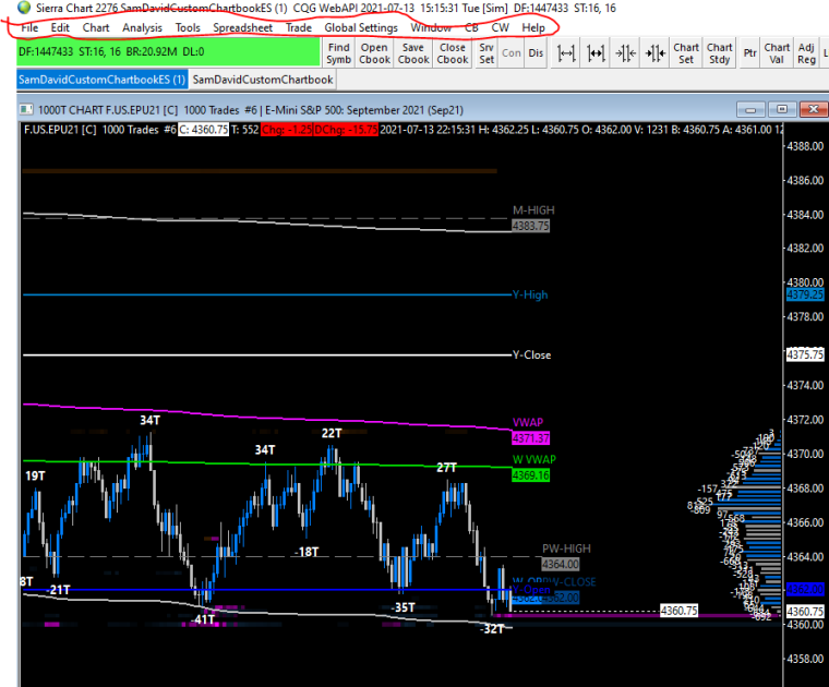 Right-click in the Region Data Line at the top of the graphics area. You will get an option for Show Menu. Select that to get your menu back. From there, if you want the Title Bar back (the top of the window that you would typically grab to move) then go to Chart >> Show Title Bar. Refer to the information here: Chart Menu: Show Menu (Chart menu) For the most reliable, advanced, and zero cost futures order routing, use the Teton service: Sierra Chart Teton Futures Order Routing |