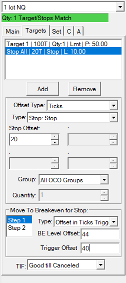 We will have to look deeper into the error message you received. But, as to your configuration, you have an issue with values you have entered. Your BE Offset is greater than your trigger, therefore when the trigger occurs, you will be closed out of the position as your Stop will be placed above the current price. You need to make your BE Offset less than the trigger value. For more information, refer to the following: Attached Orders: Breakeven (BE) Level Offset For the most reliable, advanced, and zero cost futures order routing, use the Teton service: Sierra Chart Teton Futures Order Routing |