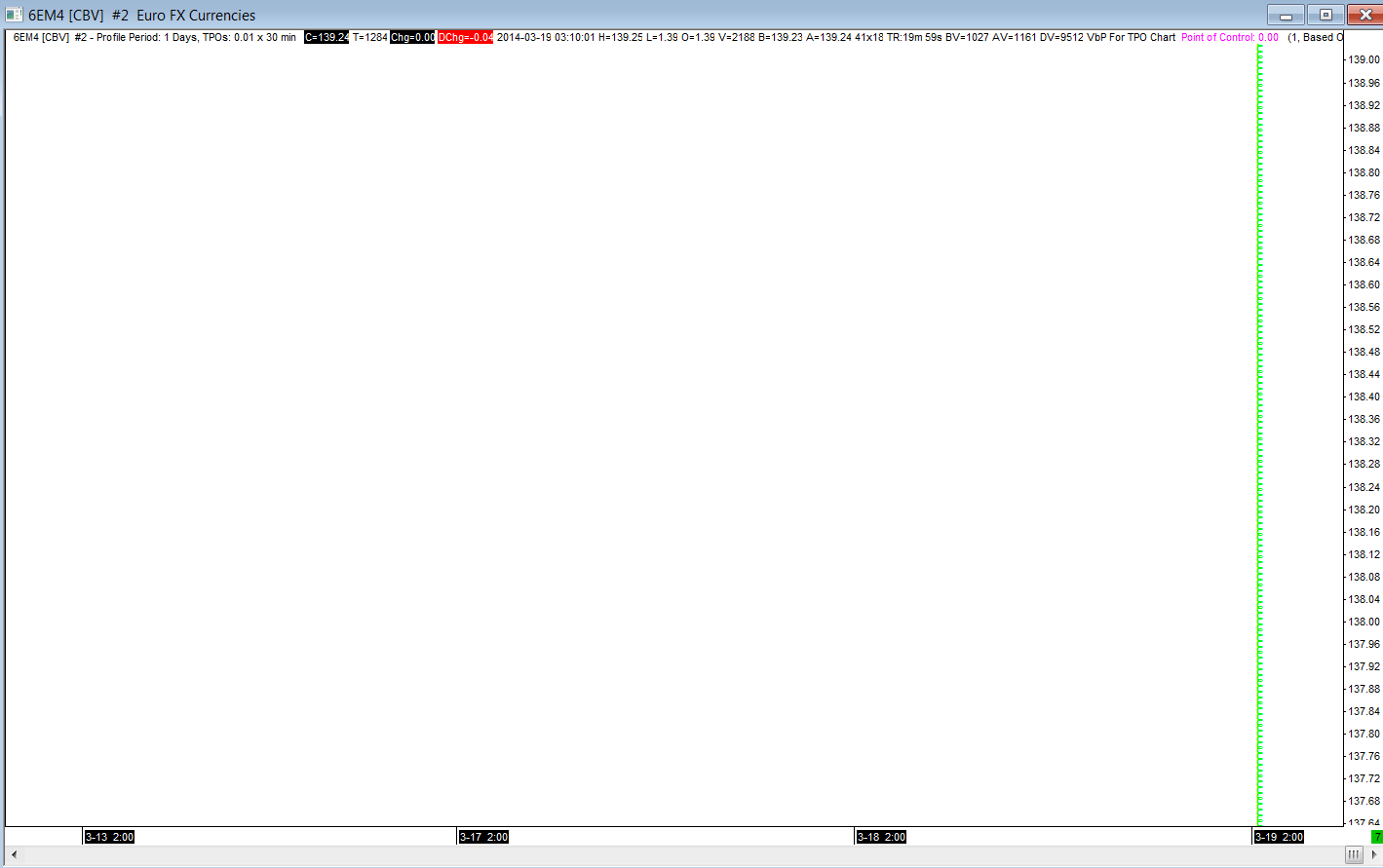 Yes, we know about this OEC currency future data issue. This is the response here: OEC Currency Futures Price Formatting and Data Downloading Issue | Post: 28436 You will have to wait a few days for this to get worked out. We really wish we could solve this more quickly, but after looking at it, we really do not see any kind of reasonable solution for the time being. We know it is not a good situation. Sierra Chart Support - Engineering Level Your definitive source for support. Other responses are from users. Try to keep your questions brief and to the point. Be aware of support policy: https://www.sierrachart.com/index.php?l=PostingInformation.php#GeneralInformation For the most reliable, advanced, and zero cost futures order routing, *change* to the Teton service: Sierra Chart Teton Futures Order Routing Date Time Of Last Edit: 2014-03-19 08:13:56
