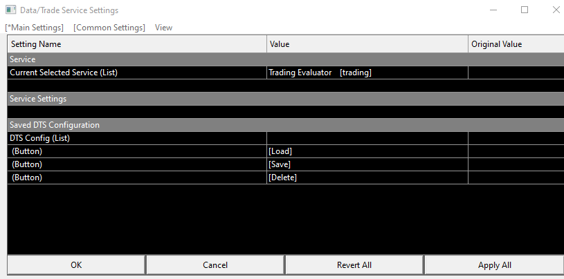 There are no settings which are required for this service. The new enhanced Simulated Trading service is the only service, which can be connected to when selecting Trading Evaluator.
