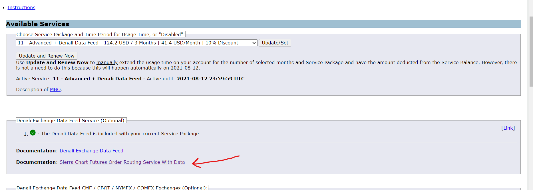 Correct, you will still get the data from the Denali Exchange Data Feed. Sierra Chart is setup to handle this situation. Refer to the information here: Real-Time Exchange Data Feeds Available From Sierra Chart: Integration with Trading Services It says in image below I have sierra order routing service as well, shouldn't I be using this?