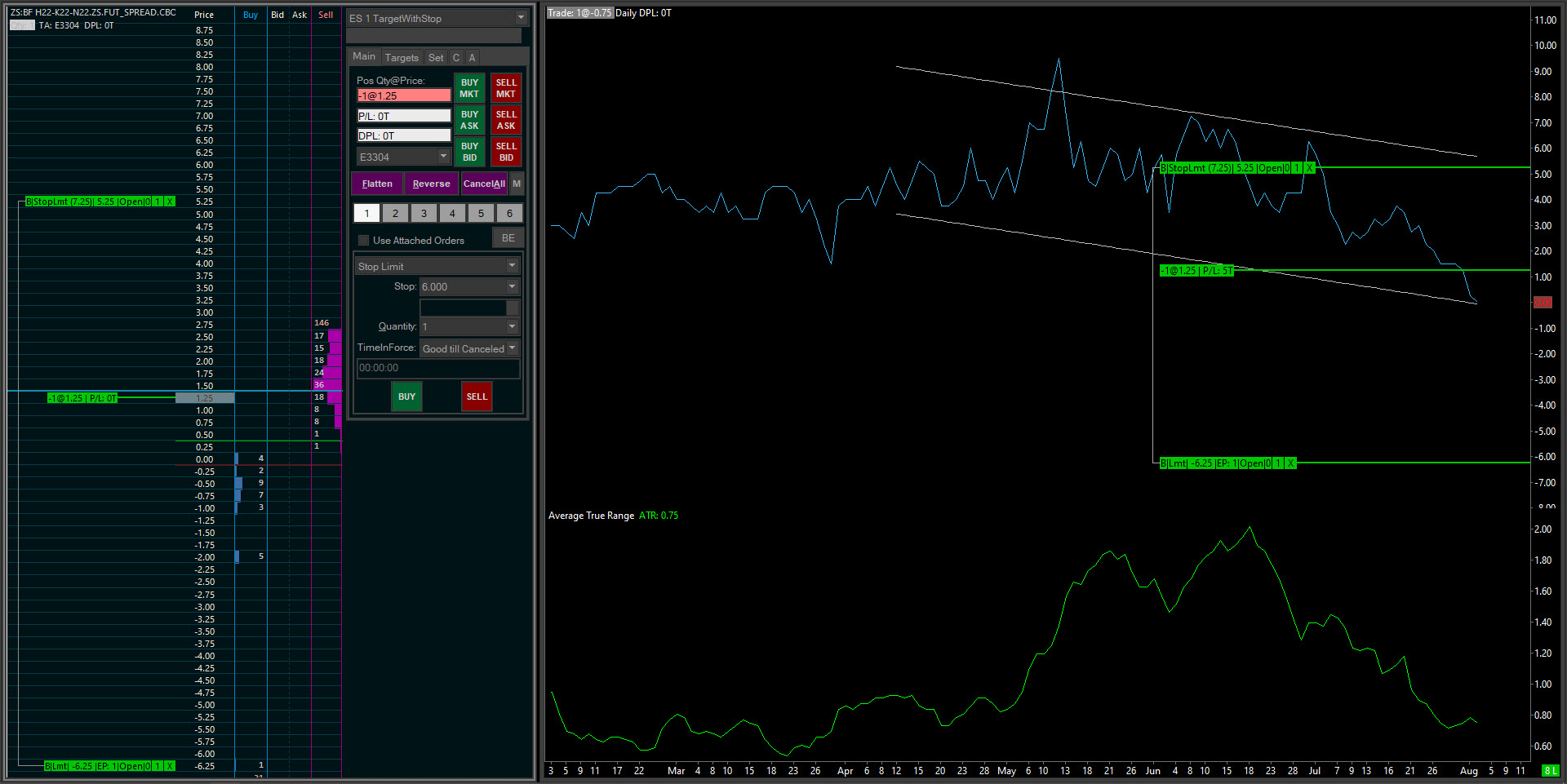 When this spread (see attached jpg) trades at a value of 0.00, the last price jumps to 1.75 and shows -9 ticks. The chart beside the DOM shows the correct values. Am I missing some setting on the DOM?