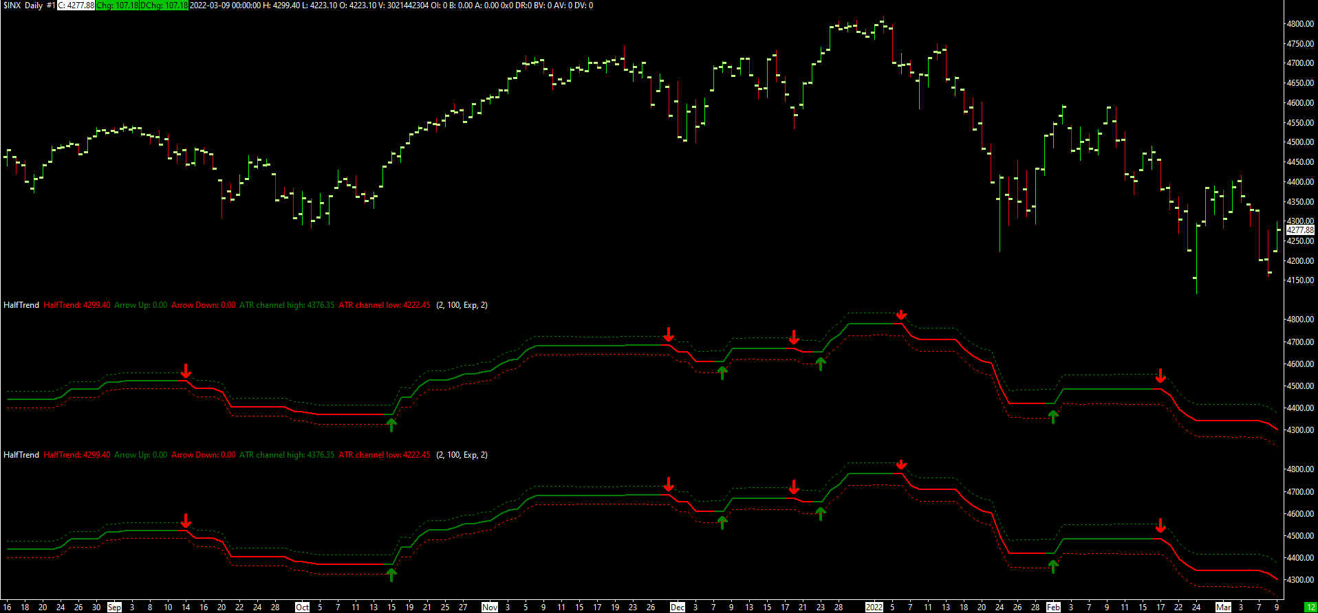 WRT Post #16 I confirm that it is of no use in SC. The original code I used to write Sierrachart's halftrend is mql4 (not the pinescript one above) and these lines made sense in that software. all the other corrections you made are relevant to me as well, thanks for having left the ATR MA type as a parameter so that those who want SMA can select it. Thanks for your work and for the addition of halftrend in SC ! OK, good to know. The HalfTrend as I have implemented it will be fine then. Sorry for the delay in responding. I have been out of town. |