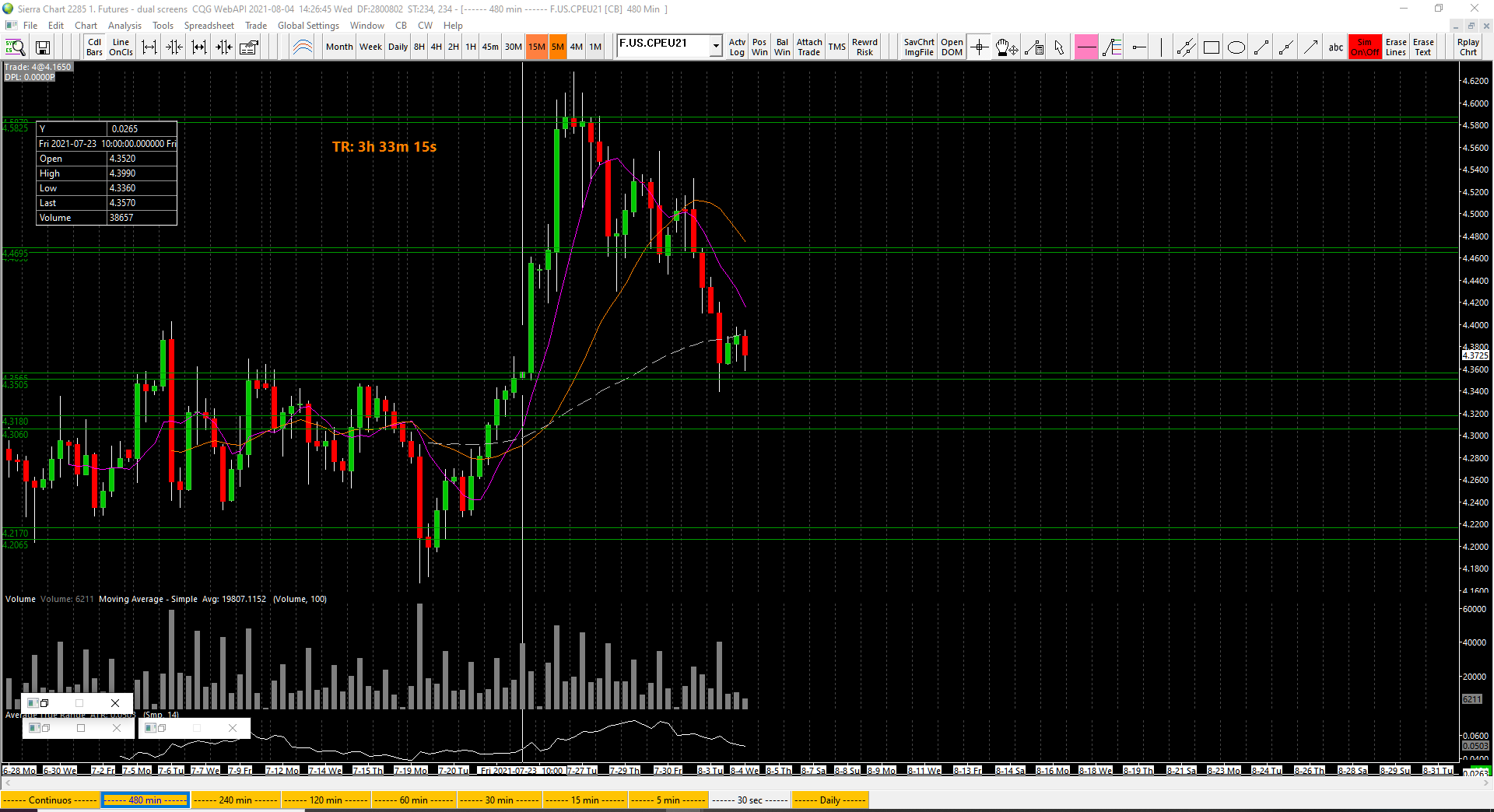 I am using the continuous contracts. I did try Denali and it wasn't good, I really don't understand what SC has against CQG. Why would I have more history on other intraday charts (e.g. 15min) than on the 480 min chart? that doesn't make any sense, they are all created from the same data aren't they? |