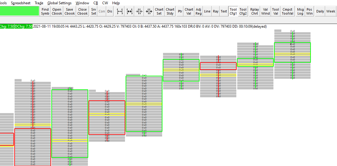 When you are looking at Daily Historical Data, you are looking at the daily information that is provided by the exchange, which does NOT include any individual pricing volume information. It is just the Open/High/Low/Close and Volume for the day. Therefore, to do what you want, you would need to use the Intraday data. To do this, you need to set Chart >> Chart Settings >> Chart Data Type to Intraday Chart Only. Refer to the following: Chart Settings: Chart Data Type (Chart >> Chart Settings >> Data Limiting >> Date Range and Limiting Method) For the most reliable, advanced, and zero cost futures order routing, use the Teton service: Sierra Chart Teton Futures Order Routing |