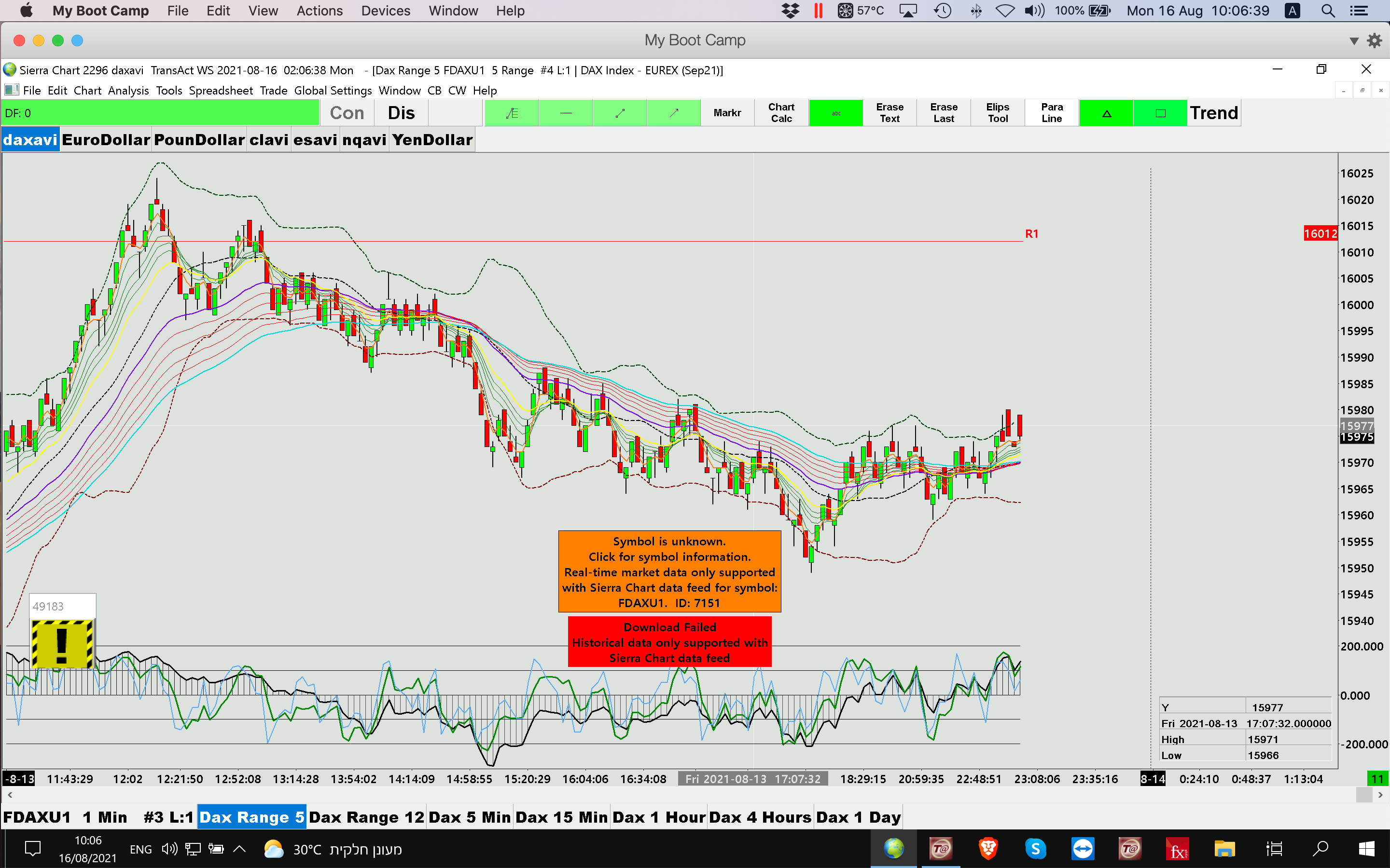 Dear Friends i get this wierd meesegege when trying to trade the DAX Picture attached no data nothing it is not a problem with Transact becouse the dom is oparting well/ only the chart is numb Whatb is wrong? M |