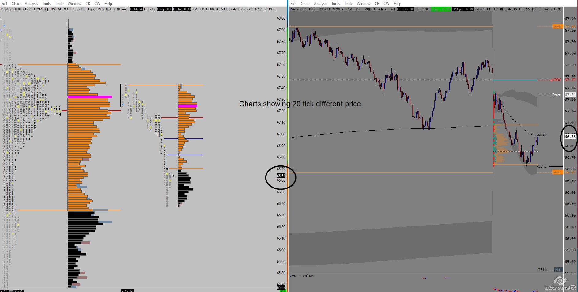 My TPO chart is showing a 20 tick different price to my candle stick chart can you help me please.