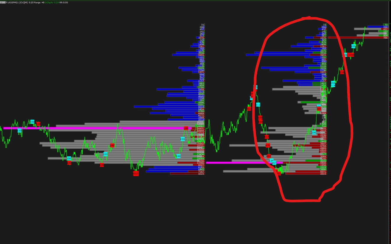 sorry for the confusion. The image I sent is a VBP with the "bid volume ask volume coloring method" set to >> "difference of bid and ask volume coloring". the reason I don't just reset the study to default for the attached image is because it would lose that specific setting. Also, I can't send a picture of the charts with the requirements you linked above because the problem happens infrequently and I have to pull the examples from my screen recordings; I apologize for the inconvenience. Also I have tried deleting and redownloading data and it didn't help. The end goal is to have a VBP with the coloring as "difference of bid and ask volume coloring" without the irregular blocky parts. I've attached 2 screen shots below. The blue and purple VBP has the blocky "difference of bid and ask volume coloring" while the red green grey VBP has a perfectly scaling "difference of bid and ask volume coloring" which is what I want mine (the blue purple vbp) to do. Thank you again, it's very much appreciated. |