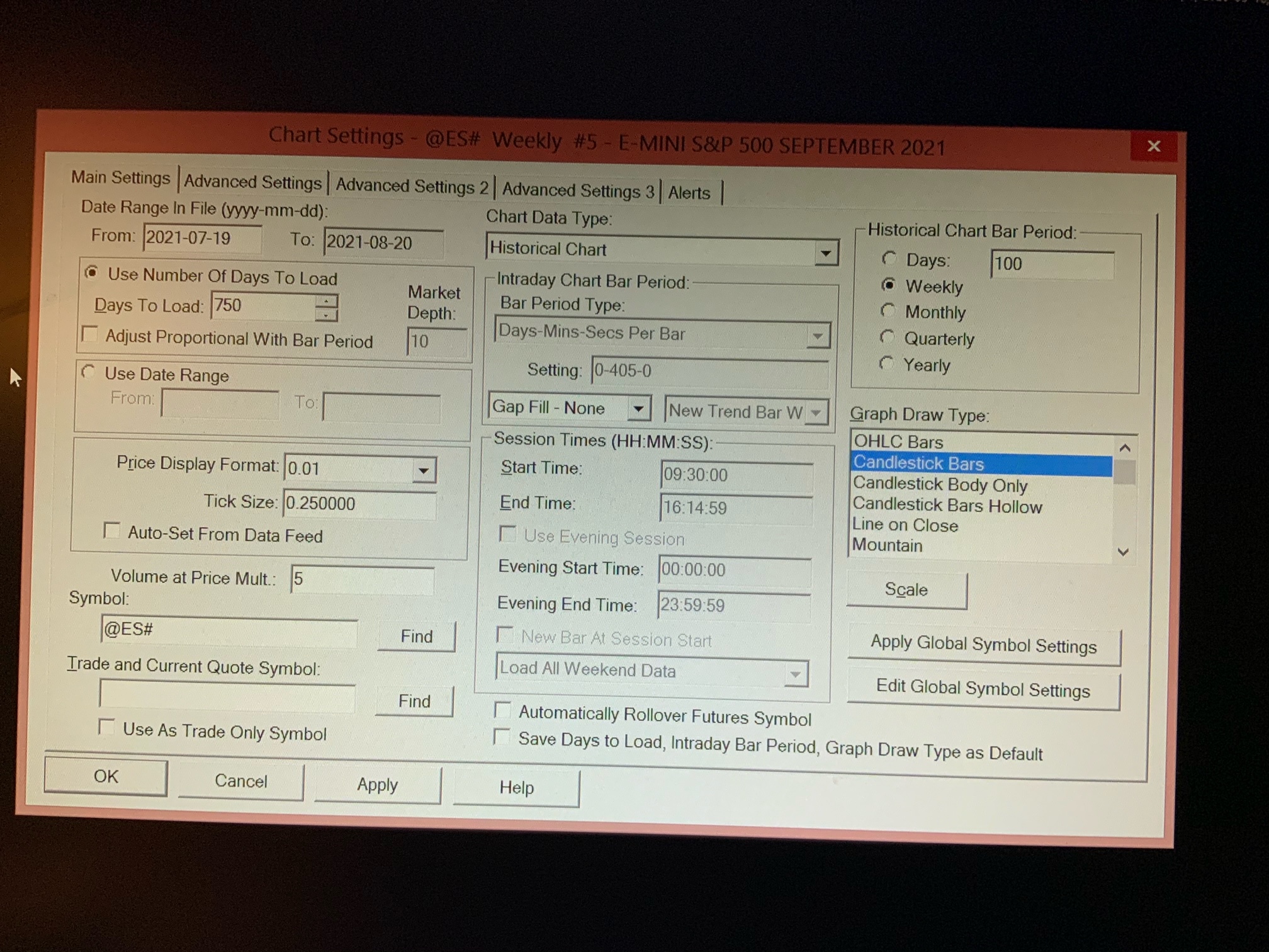 For that symbol we got data back to 1997-09-09 using IQ Feed, and the latest version of Sierra Chart. Follow the instructions here to clear the Message Log: Message Log: Clearing the Message Log Fully re-download the data in the chart by going to the chart and selecting "Edit >>Delete All Data and Download". After about a minute provide a copy of the Message Log following these instructions: Support Board Posting Information: How to Post Your Message Log (Required In Some Cases) We will then determine what the problem is. Sierra Chart Support - Engineering Level Your definitive source for support. Other responses are from users. Try to keep your questions brief and to the point. Be aware of support policy: https://www.sierrachart.com/index.php?l=PostingInformation.php#GeneralInformation For the most reliable, advanced, and zero cost futures order routing, use the Teton service: Sierra Chart Teton Futures Order Routing |