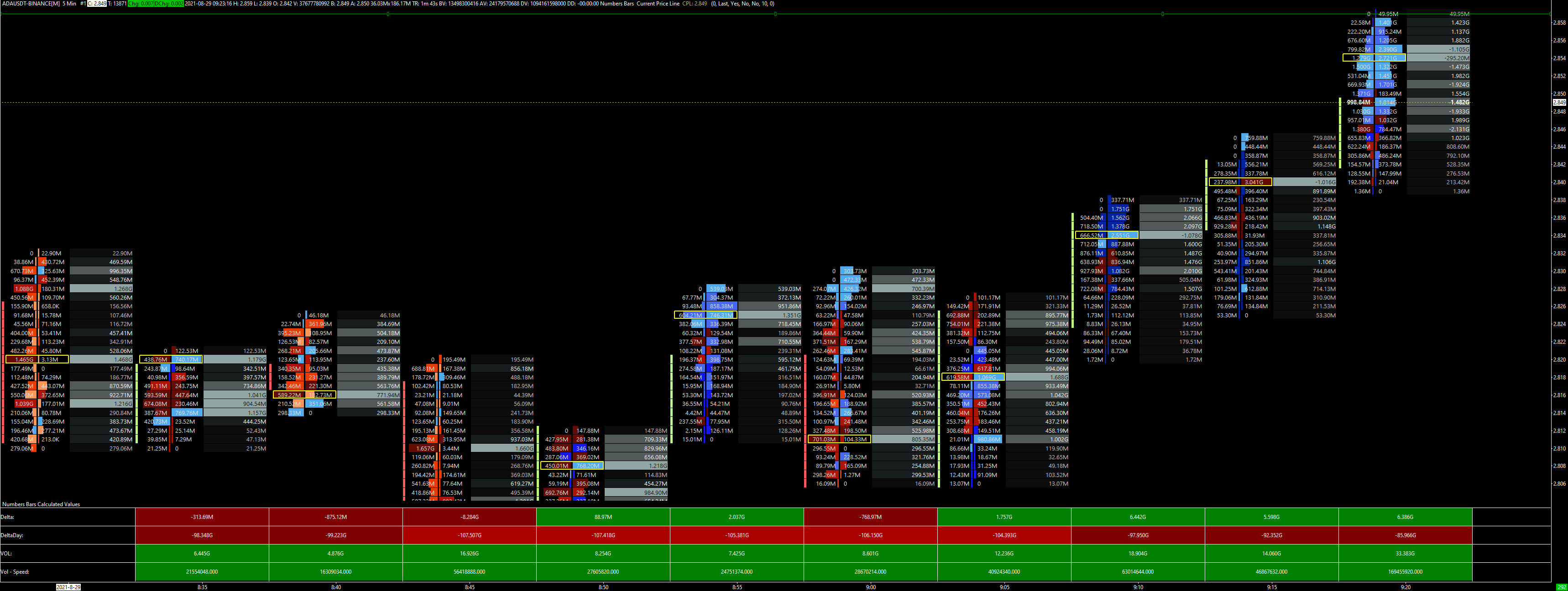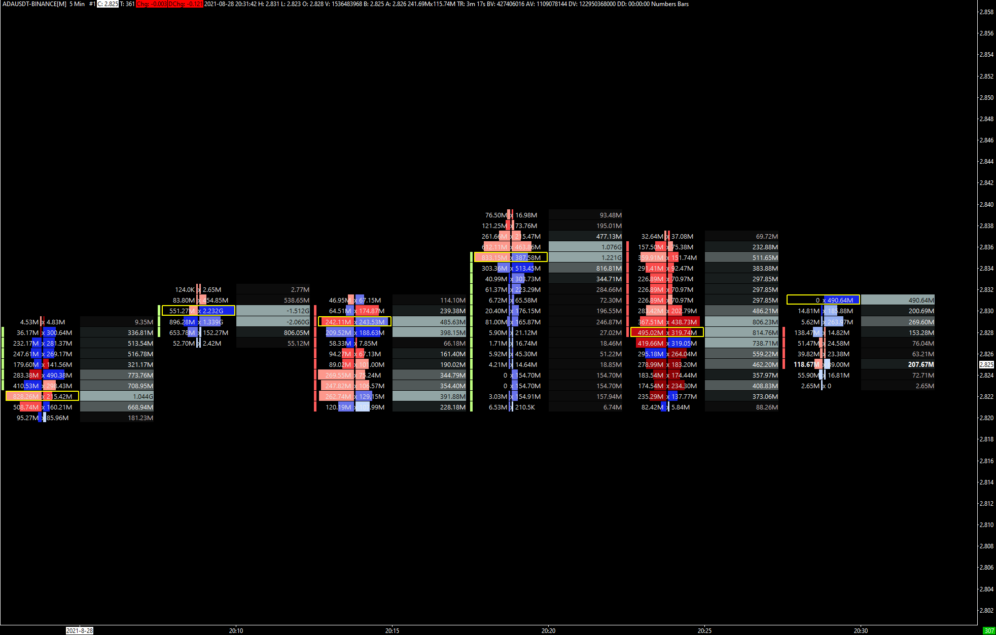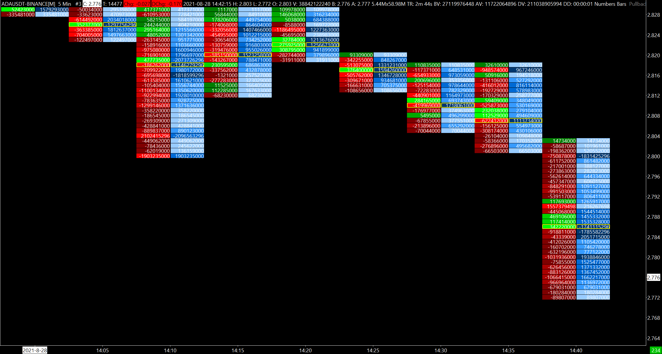 Trying to shorten the big numbers that appear with ADAUSDT pair on Binance using Numbers Bars Chart. I select "Study Settings => Value Format => Large Integer With Suffix" but nothing changes and the number stays as they were. Can also ask why in the second (blue) column where I have selected the values text to be volume the values appear to be negative? Negative Volume? how is that possible? http://www.sierrachart.com/image.php?Image=1630161737335.png Thanks for any help. Sergio |