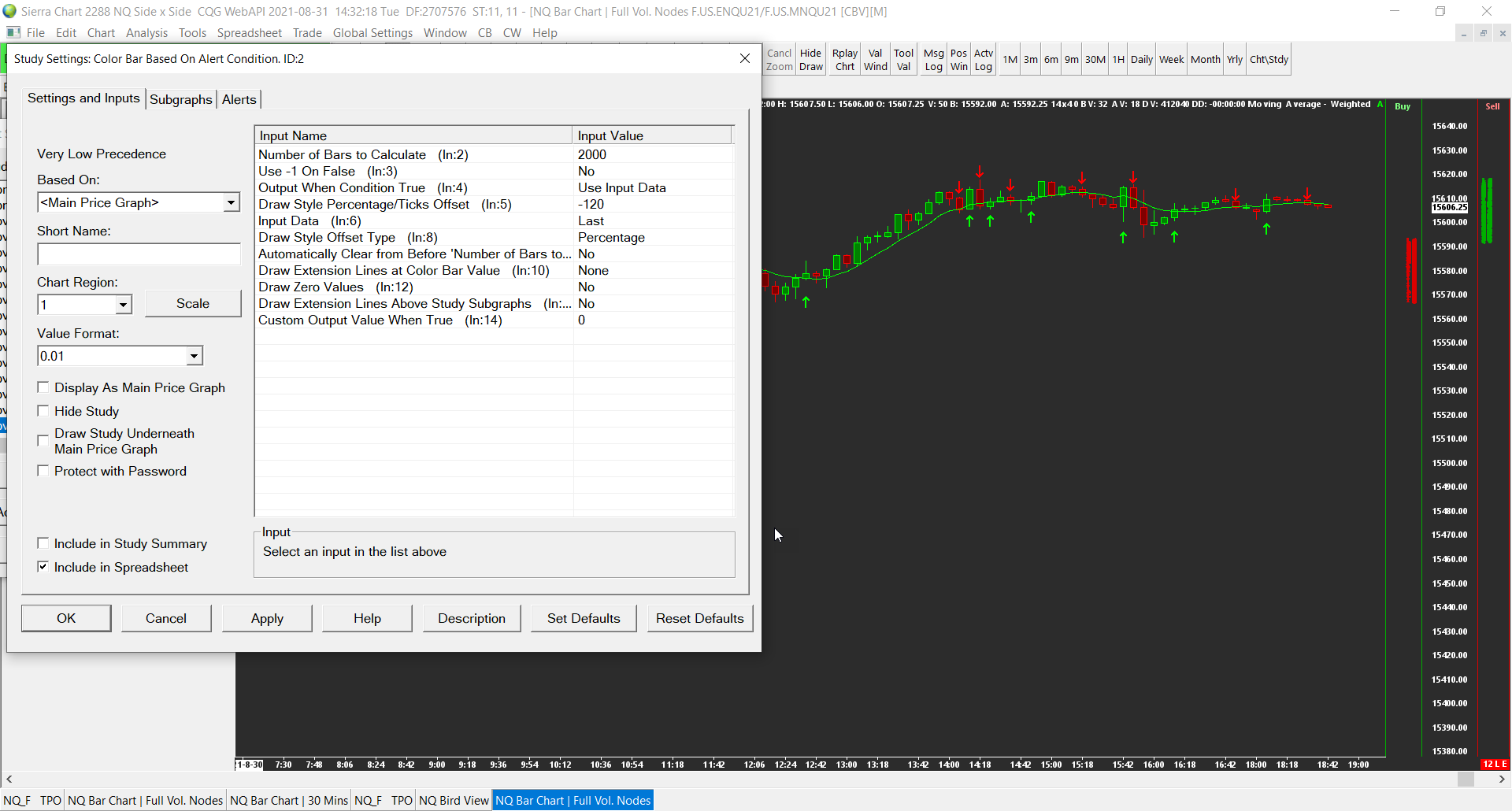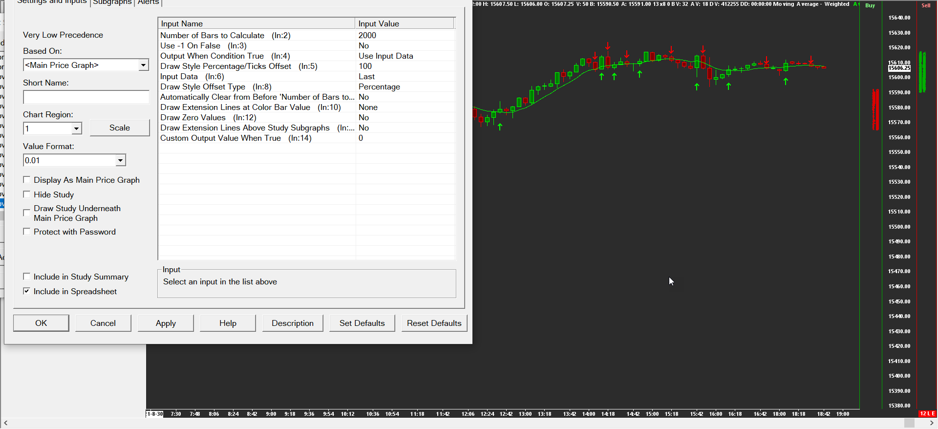 Awesome! This one is working. Thanks! I just wasnt sure what I needed to change in there. Just a suggestion if you'd like... so for the arrows to show at the end of the candles, instead of on top of them. I changed the draw style to percentage -120, 100. See attachment. Thanks again! |