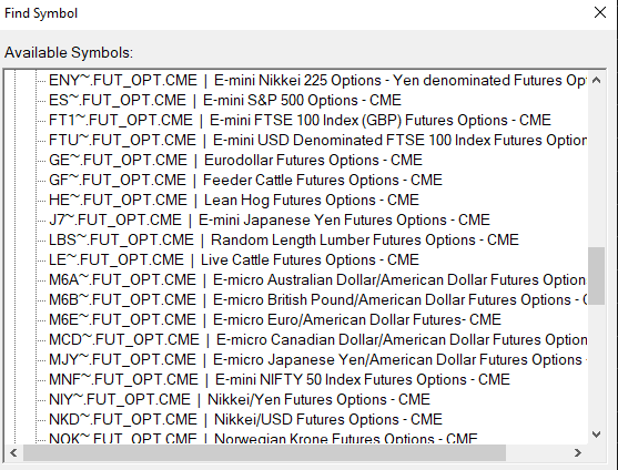 Still can't locate available options contracts for MES using "Find Symbol" As you can see, ES options are listed near the top of the attached image. Since the listings are alphabetical, I would think MES would be included with the "M"'s but they aren't there. However, I was able to manually enter the product code for the MES 2nd Friday Weekly (EX2U21~) and open a trading DOM. Price on the DOM appears to be correct, so I guess I'm good. At this point, just passing it along. |
