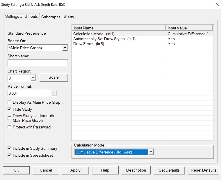 hello, reference to [2021-09-02 15:17:58] message u sent me. 1. in this study i found (file of pic is attached) only cumulative difference (bid-ask). there is cumulative of bid quantities and cumulative of ask quantities study? there is other ways beside study ? 2. i want to do more calculation on the parmeters ( for example: ((cumulative bid * 10 + 543)/(cumulative ask -9.3 )) ) and then to see that calculation by study, "text display for study" or by study, "study subgraph above/below bar as text"... what is the option i have to do that ? many thanks. Date Time Of Last Edit: 2021-09-28 18:29:27