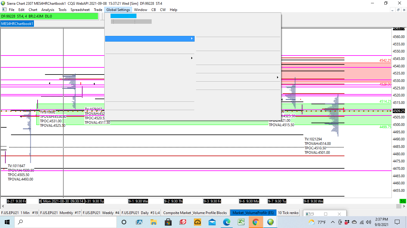 Hi, I am able to see the real time data and i am able to see charts moving but TPO profile is missing and only volume profile is visible on my charts. And the text from the Tabs like File, Trade, Edit, Charts, Tools, Global Setting ETC ETC are missing, i Cannot see text under these Tabs, Even on my Trade Window I cannot see my Account number an some of the Text is missing from that too. I reinstalled Sierra chart and also Restarted my laptop Couple of times. please let me know what is going on. Thank you! |