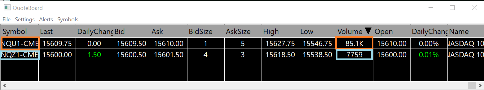 Hi,this morning, SC has automatically rolled over the CME futures (such as NQ, ES, 6E to name a few) from U1 to Z1. The option 'Detect Rollover Of Current Futures Contracts Symbols Based On Real Time Volume' is ticked. If you look at the attached picture, you could see that today, NQU1 has still 10 times more volume than NQZ1. So why has SC rolled over?