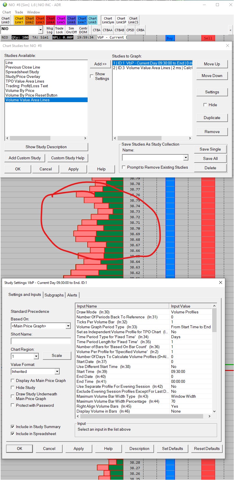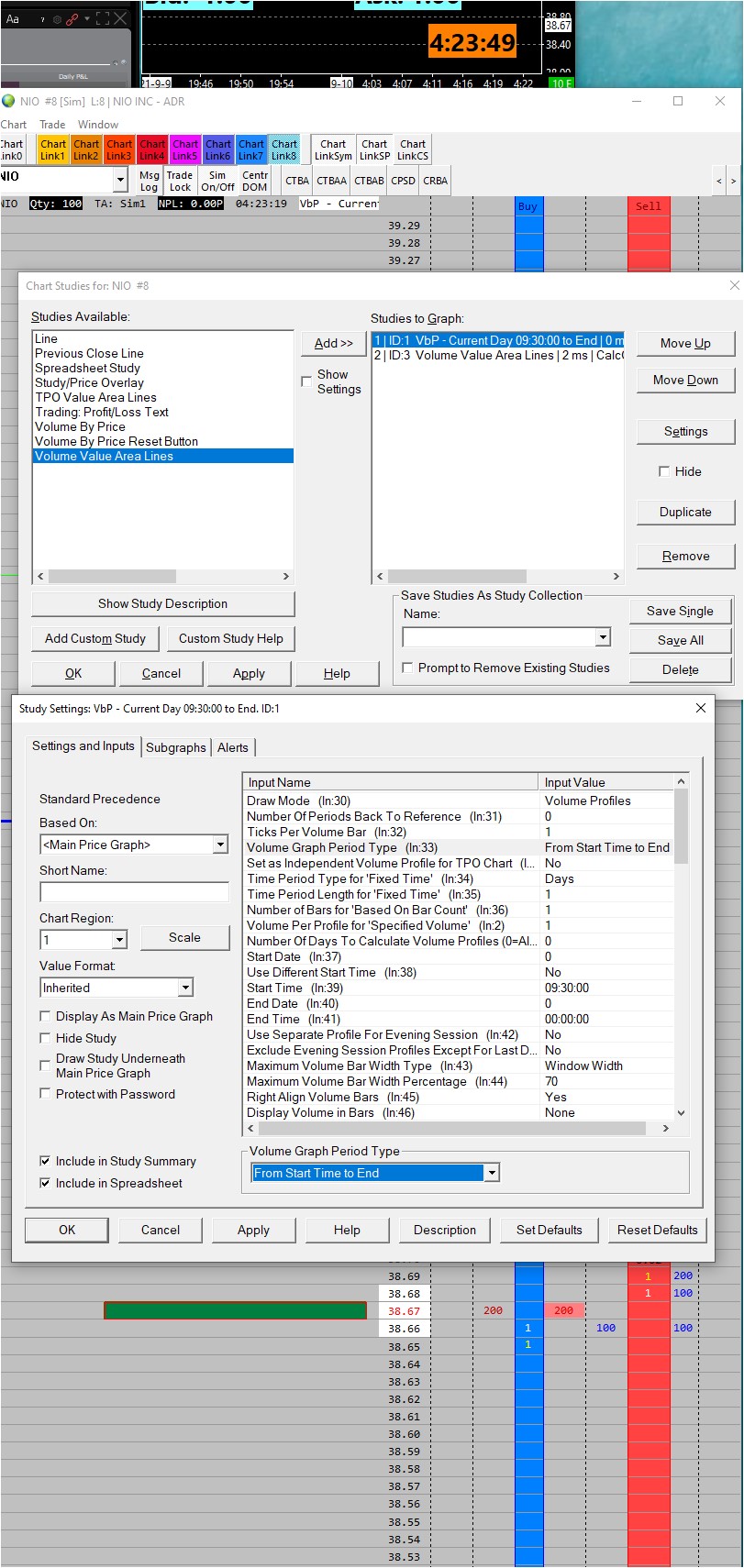 As we noted in another one of your posts, you can not use that particular choice of VbP Graph Period Type (From Start Time to End Time) in the Trading DOM. It was overlooked as an item that needed to be locked out. We will take care of doing that, but in the meantime, you need to select a different Graph Type that is supported for the Trading DOM.