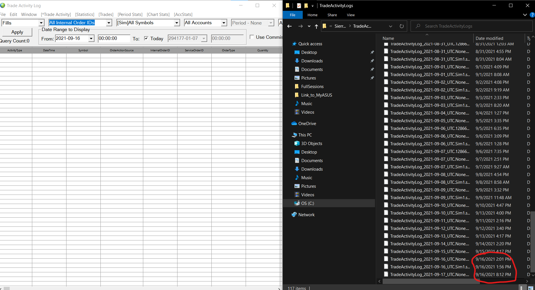 randomly, starting yesterday, my trades no longer appear in trade activity log or when "show order fills" is active. Its almost like the files were automatically deleted but they still exist in the SC files. Am I missing something? also I only trade on sim so the filters aren't wrong in the trade activity log. Appreciate your time |