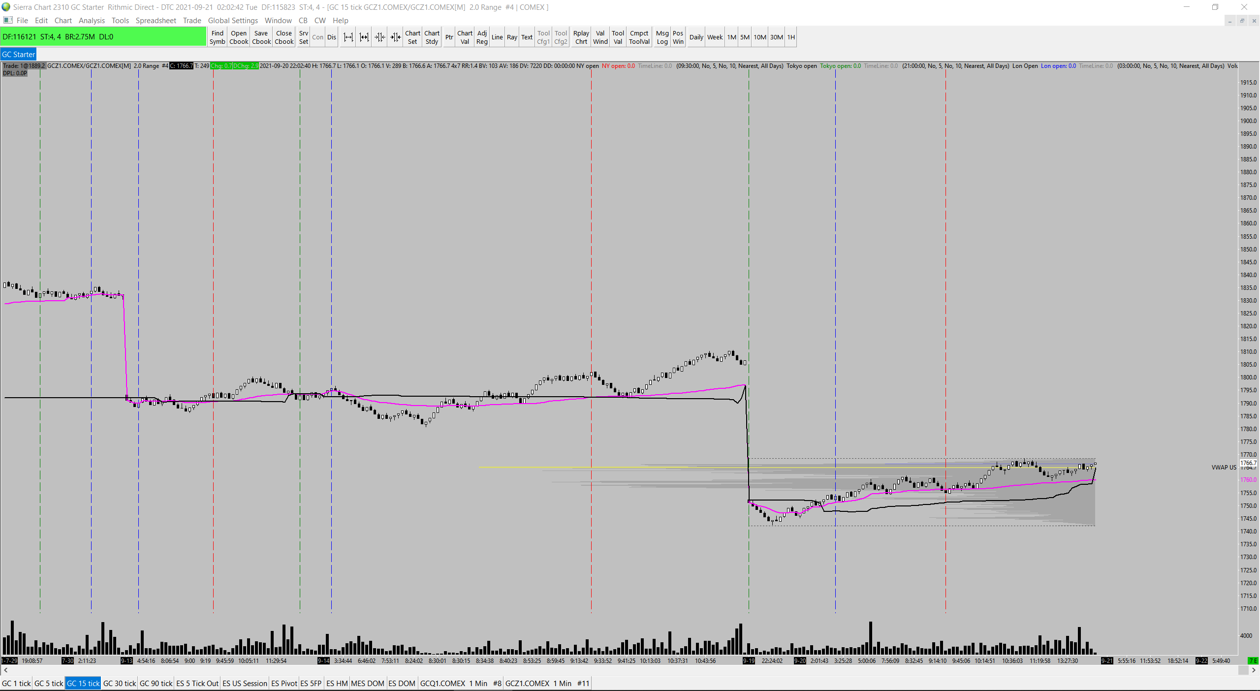 Hi I recently changed my broker and in the process let my Sierra and data feed lapse. They are now both reinstated, however I am seeing gaps in my data (refer screenshot) To try and fix Ive searched and found the following which I applied, however it did not assist: - Updated Sierra to latest version - Closed and re-opened it - Cleared message log - Clicked "delete and download data" - Copied and pasted the message log (below) Can you please assist and advise. Thanks Software version: 2310 64-bit | 2021-09-21 02:15:30.907 Primary Thread ID: 11984 | 2021-09-21 02:15:30.907 Usage end date: 2022-01-25 | 2021-09-21 02:15:30.907 Enabled for: Advanced Features 2. | 2021-09-21 02:15:30.907 Enabled for: Sierra Chart Historical Data Service. | 2021-09-21 02:15:30.907 Enabled for: Denali Real-Time Exchange Data Feed. | 2021-09-21 02:15:30.907 Enabled for: Delayed Denali Exchange Data Feed. | 2021-09-21 02:15:30.907 Enabled for exchange2: CME (Trading Account Required) | 2021-09-21 02:15:30.907 Enabled for exchange2: CBOT (Trading Account Required) | 2021-09-21 02:15:30.907 Enabled for exchange2: COMEX (Trading Account Required) | 2021-09-21 02:15:30.907 Enabled for exchange2: NYMEX (Trading Account Required) | 2021-09-21 02:15:30.907 Allow Support for Sierra Chart Data Feeds is enabled. | 2021-09-21 02:15:30.907 Current selected Data/Trading service: Rithmic Direct - DTC | 2021-09-21 02:15:30.907 Custom symbol settings values: enabled | 2021-09-21 02:15:30.907 Chart Update Interval: 500 | 2021-09-21 02:15:30.907 Intraday Data Storage Time Unit: 0 | 2021-09-21 02:15:30.907 Time Zone: +00:00:00 (UTC+00) | 2021-09-21 02:15:30.907 2021-09-21 02:15:30 Local computer time in UTC | 2021-09-21 02:15:30.907 2021-09-21 02:15:30 Local computer time in SC Time Zone | 2021-09-21 02:15:30.907 2021-09-21 01:44:39 Server time in UTC | 2021-09-21 02:15:30.907 Local computer UTC time and Server UTC time difference: 0 seconds. | 2021-09-21 02:15:30.907 Program path: D:\Trading\a Day Trading\Sierra Charts\ | 2021-09-21 02:15:30.907 Data Files path: D:\Trading\a Day Trading\Sierra Charts\Data\ | 2021-09-21 02:15:30.907 OS Version Number: 10.0 | 2021-09-21 02:15:30.907 Locale Setting: C | 2021-09-21 02:15:30.907 DLLs: UserContributedStudies_64.dll | 2021-09-21 02:15:30.907 Allowed protected custom studies: | 2021-09-21 02:15:30.907 Added historical Intraday data request for GCZ1.COMEX to the queue. | 2021-09-21 02:15:46.010 Intraday data recording state for symbol GCZ1.COMEX is set to download 'Pending'. | 2021-09-21 02:15:46.010 Triggering next historical data download in queue. | 2021-09-21 02:15:46.010 HD Request # 5 | Downloading Intraday chart data for GCZ1.COMEX to the file GCZ1.COMEX.scid. Service: comex | 2021-09-21 02:15:46.010 HD Request # 5 | Download start date-time: 2021-09-20 13:55:40.423000. File last date-time: 2021-09-21 02:15:25.427000 | 2021-09-21 02:15:46.010 HD Request # 5 | Disabling Intraday chart updating for symbol. | 2021-09-21 02:15:46.010 HD Request # 5 | Using server: ds23.sierracharts.com port 10150 | 2021-09-21 02:15:46.010 Socket (3) | Creating socket. | 2021-09-21 02:15:46.161 Socket (3) | New receive buffer size: 5242880 | 2021-09-21 02:15:46.161 Socket (3) | Connecting to IP: 216.1.90.130. | 2021-09-21 02:15:46.161 HD Request # 5 | Setting DTC encoding to Binary VLS | 2021-09-21 02:15:46.616 HD Request # 5 | Sending historical data logon request message. | 2021-09-21 02:15:46.616 HD Request # 5 | Requesting Intraday data. Start date-time: 2021-09-20 13:55:40. Record interval: 0. Symbol: GCZ21 | 2021-09-21 02:15:47.303 HD Request # 5 | Decompressing data. | 2021-09-21 02:15:47.525 HD Request # 5 | Receiving Intraday data for GCZ1.COMEX starting at 2021-09-20 13:55:40.078000 | 2021-09-21 02:15:47.986 HD Request # 5 | Truncating file to starting date-time of 2021-09-20 13:55:40.423 | 2021-09-21 02:15:47.986 HD Request # 5 | Timestamp of first Intraday data file record written: 2021-09-20 13:55:40.422000 | 2021-09-21 02:15:48.672 Socket (3) | CloseSocket call. | 2021-09-21 02:15:48.684 Socket (3) | Shutdown started. Waiting for graceful close. | 2021-09-21 02:15:48.684 Historical data download thread signaled to stop. | 2021-09-21 02:15:48.685 HD Request # 5 | Received 52928 Intraday data records from 2021-09-20 13:55:40.078000 to 2021-09-21 02:15:25.427000 (12.3 hours) and wrote 52926 records for GCZ1.COMEX | 2021-09-21 02:15:48.685 HD Request # 5 | Add time&sales data | Remembered last file record date-time: 2021-09-21 02:15:25.427000 | 2021-09-21 02:15:48.686 HD Request # 5 | Completion time: 2s | 2021-09-21 02:15:48.686 HD Request # 5 | Intraday data download complete for GCZ1.COMEX. Unique request ID: 5 | 2021-09-21 02:15:48.686 Removing historical data download ID 5. | 2021-09-21 02:15:48.686 Real-time Intraday chart data file updates started for GCZ1.COMEX | 2021-09-21 02:15:48.686 Intraday chart data file opened for GCZ1.COMEX | 2021-09-21 02:15:48.686 HD Request # 5 | Enabling Intraday chart updating for symbol. | 2021-09-21 02:15:48.686 GCZ1.COMEX/GCZ1.COMEX[M] 0.1 Range #9 | Flagging to reload Intraday data on download completion. | 2021-09-21 02:15:48.686 GCZ1.COMEX[M] 0.5 Range #36 | Flagging to reload Intraday data on download completion. | 2021-09-21 02:15:48.686 GCZ1.COMEX/GCZ1.COMEX[M] 2.0 Range #4 | Flagging to reload Intraday data on download completion. | 2021-09-21 02:15:48.686 GCZ1.COMEX/GCZ1.COMEX[M] 3.0 Range #5 | Flagging to reload Intraday data on download completion. | 2021-09-21 02:15:48.686 GCZ1.COMEX/GCZ1.COMEX[M] 9.0 Range #7 | Flagging to reload Intraday data on download completion. | 2021-09-21 02:15:48.686 GCZ1.COMEX[M] 1.0 Range #3 | Flagging to reload Intraday data on download completion. | 2021-09-21 02:15:48.686 GCZ1.COMEX[M] 1 Min #11 | Flagging to reload Intraday data on download completion. | 2021-09-21 02:15:48.686 Triggering next historical data download in queue. | 2021-09-21 02:15:48.686 No download requests in the queue to start downloads for.