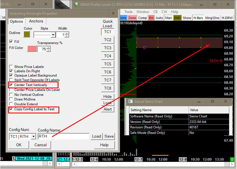You are correct, the Extended Rectangle does not have an option to have default text show up. It does have the ability to have the Price levels for the upper and lower boundaries show (Show Price Labels in the configuration). We do not remember which tools have the option and which tools do not. You would just have to go through the Configurations to see if the option is there. For the most reliable, advanced, and zero cost futures order routing, use the Teton service: Sierra Chart Teton Futures Order Routing |