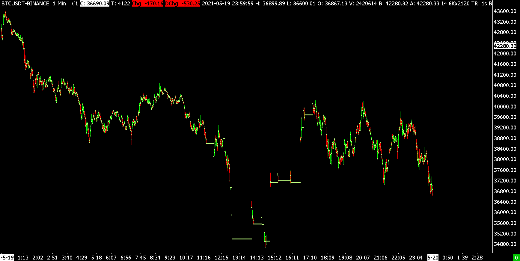 The price data from Binance on Sierra Charts is inaccurate, thousands of dollars off at times. This is in comparison to the data from Bitfinex on Sierra Charts (which is accurate) as well as the data from the exact same pairing & exchange (e.g., BTC/USDT Binance) on other platforms like TradingView. Even the data from Ninjatrader from Coinbase (BTCUSD) is a more accurate representation of general price action on all exchanges. I have attached the most relevant screenshots to this post on different platforms that addresses this issue (I have more screenshots but that unfortunately exceeds the data limit allowed for posting). The most noteworthy discrepancy is on the major down bar on May 19th 2021. On pretty well every exchange it hit a low of 30k USD (on Binance, it hit 30k USD exactly). Yet, in Sierra Charts it says BTC/USDT hit a low of $34,682 on Binance which just isn't true. Same thing with BTC/USDC on Sierra charts, it says the low on May 19th was $34,785 on Binance. Again, not accurate. I have noticed similar discrepancies with other instruments on Sierra Charts from Binance, e.g., Ethereum. These are major discrepancies and am wondering what the cause is? It makes the data unusable for me. Thankyou, -Stupid_idiot Date Time Of Last Edit: 2021-09-21 20:03:22