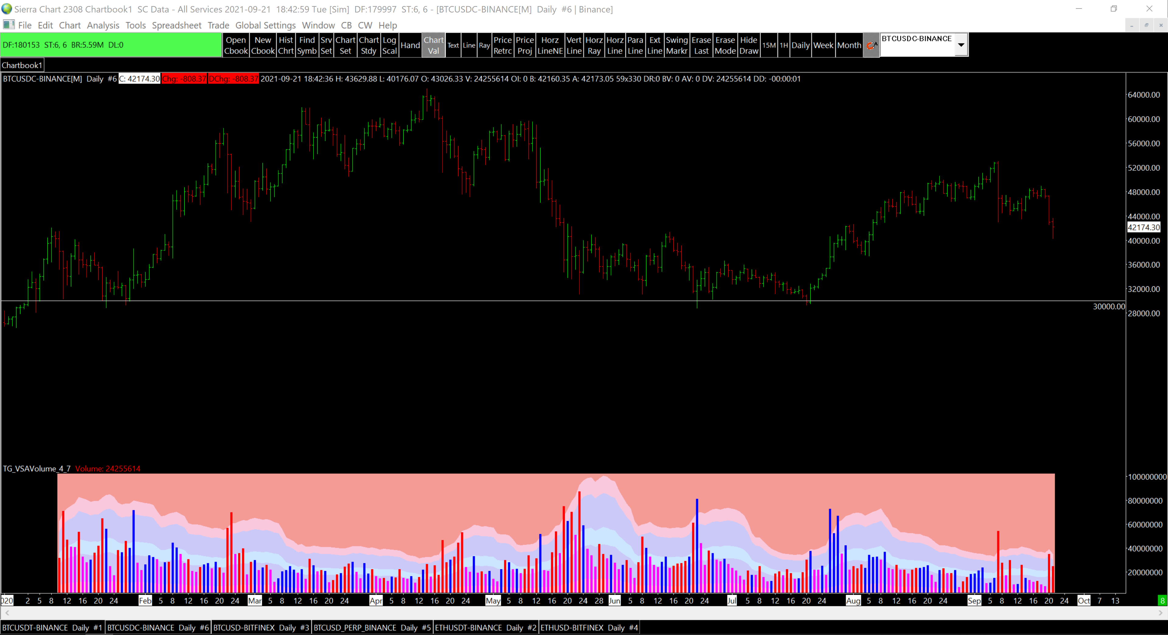 You may be comparing the wrong symbols. Binance has a lot of different symbols which are similar. This is the one you are probably looking for: http://www.sierrachart.com/image.php?Image=1632259693803.png The data simply could not be inaccurate. This is a claim that has no basis in fact or reality, or is even possible. Simply impossible. How can that possibly be true? Sierra Chart Support - Engineering Level Your definitive source for support. Other responses are from users. Try to keep your questions brief and to the point. Be aware of support policy: https://www.sierrachart.com/index.php?l=PostingInformation.php#GeneralInformation For the most reliable, advanced, and zero cost futures order routing, *change* to the Teton service: Sierra Chart Teton Futures Order Routing |