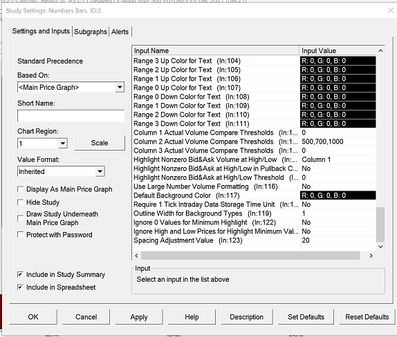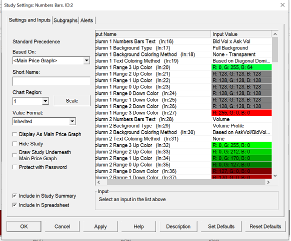 Background Numbers Bars: Background Coloring Based on Volume - Actual Numbers Bars: Background Coloring Based on Dominant AskVol BidVol - Actual Text Numbers Bars: Text Coloring Based on Volume - Actual Numbers Bars: Text Coloring Based on Dominant AskVol BidVol - Actual Actual Thresholds Numbers Bars: Column # Actual Volume Compare Thresholds Date Time Of Last Edit: 2021-09-24 13:11:56
