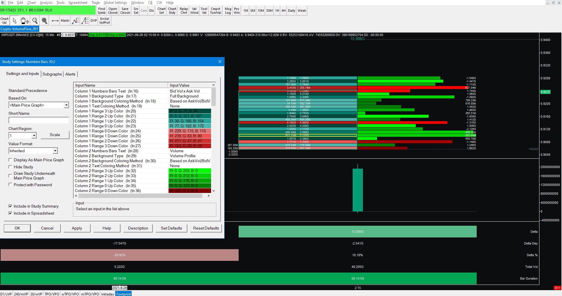 Dear Sierra Chart team, I am using the latest version of SC and SC - Data All services package to load crypto data from Binance. However, when using Number Charts in Sierra, I see that the sum of Bid/Ask volumes for each row does not match the "volume" number shown in the second column. Also, when I show the volume profile, the lengths of the bars do not match with VPC and/or bid/ask volumes. Please see the attached screenshots for more information. I read all the tutorial documents and watched some Youtube channels; however, I couldn't solve this issue. Can you please help with that? Thank you! http://www.sierrachart.com/image.php?Image=1632650027907.png |