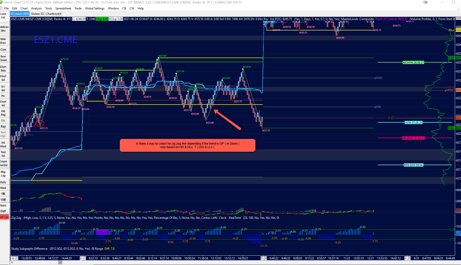 Hi, PLs hlp - is there a way to colour the Zig Zag line in accordance with the trend as set by the HH & HLs Many thanks |