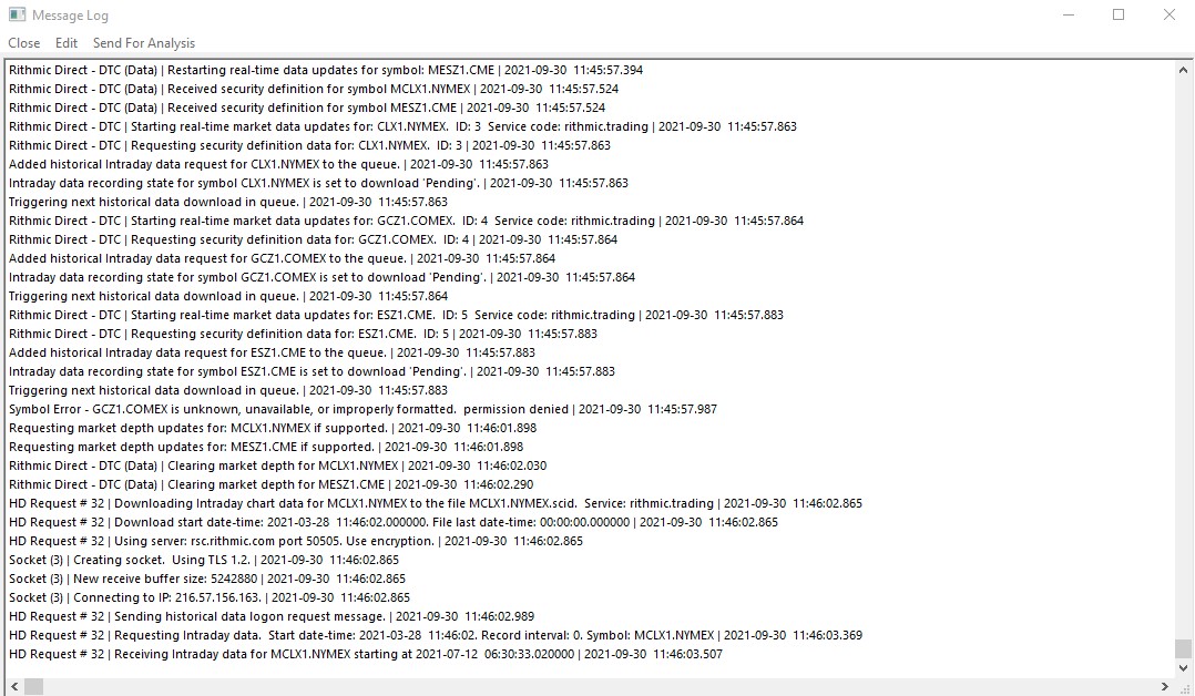 We cannot help with market data issues with Rithmic. Especially with historical data. You will solve this problem and immediately solve the problem, by using the Denali Exchange Data Feed which is only 10 USD per month more before discount and then about 3 USD a-month for the exchange fee. Full documentation and instructions: Denali Exchange Data Feed: Introduction Let us know if you need help with the setup of the data feed. If you do not have an actual Live funded account and need to authorize the real time CME data at nonprofessional fees, then use this solution: Easy Solution to CME Funded Trading Account Requirement Sierra Chart Support - Engineering Level Your definitive source for support. Other responses are from users. Try to keep your questions brief and to the point. Be aware of support policy: https://www.sierrachart.com/index.php?l=PostingInformation.php#GeneralInformation For the most reliable, advanced, and zero cost futures order routing, use the Teton service: Sierra Chart Teton Futures Order Routing |