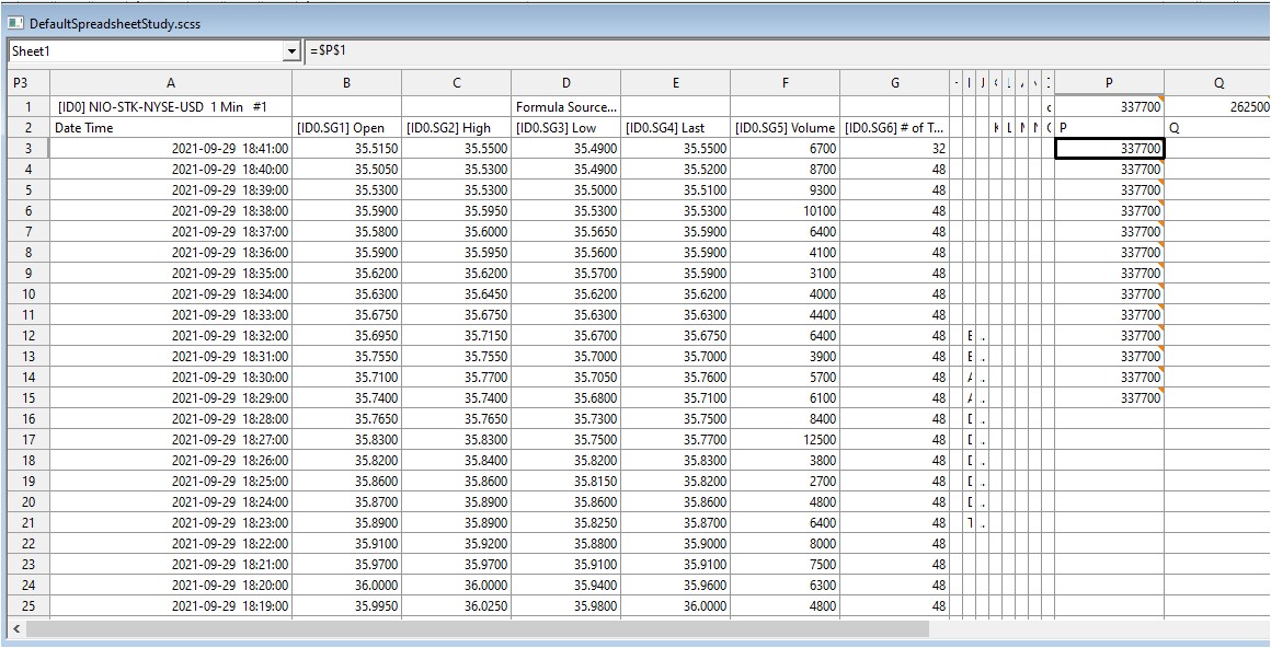 as in column F there is "volume" value which is get a dynamic value from the exchange (or what ever), which accumulate for period of time and then stays as "stamp" value. so y i can't take this dynamic value (cell p1) and then make it like a stamp.... there most be a way! (in excel vba i can do that) maybe there is a way to export the data/the spreadsheet to excel? (real time data) maybe u have a new solution ? many thanks Date Time Of Last Edit: 2021-09-30 10:39:10