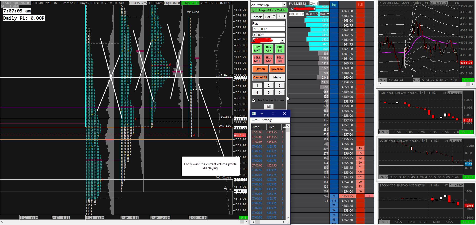 Hello, I would like my chart to only display the current session volume profile in relation to the TPO. Below I have attached a photo to show. |