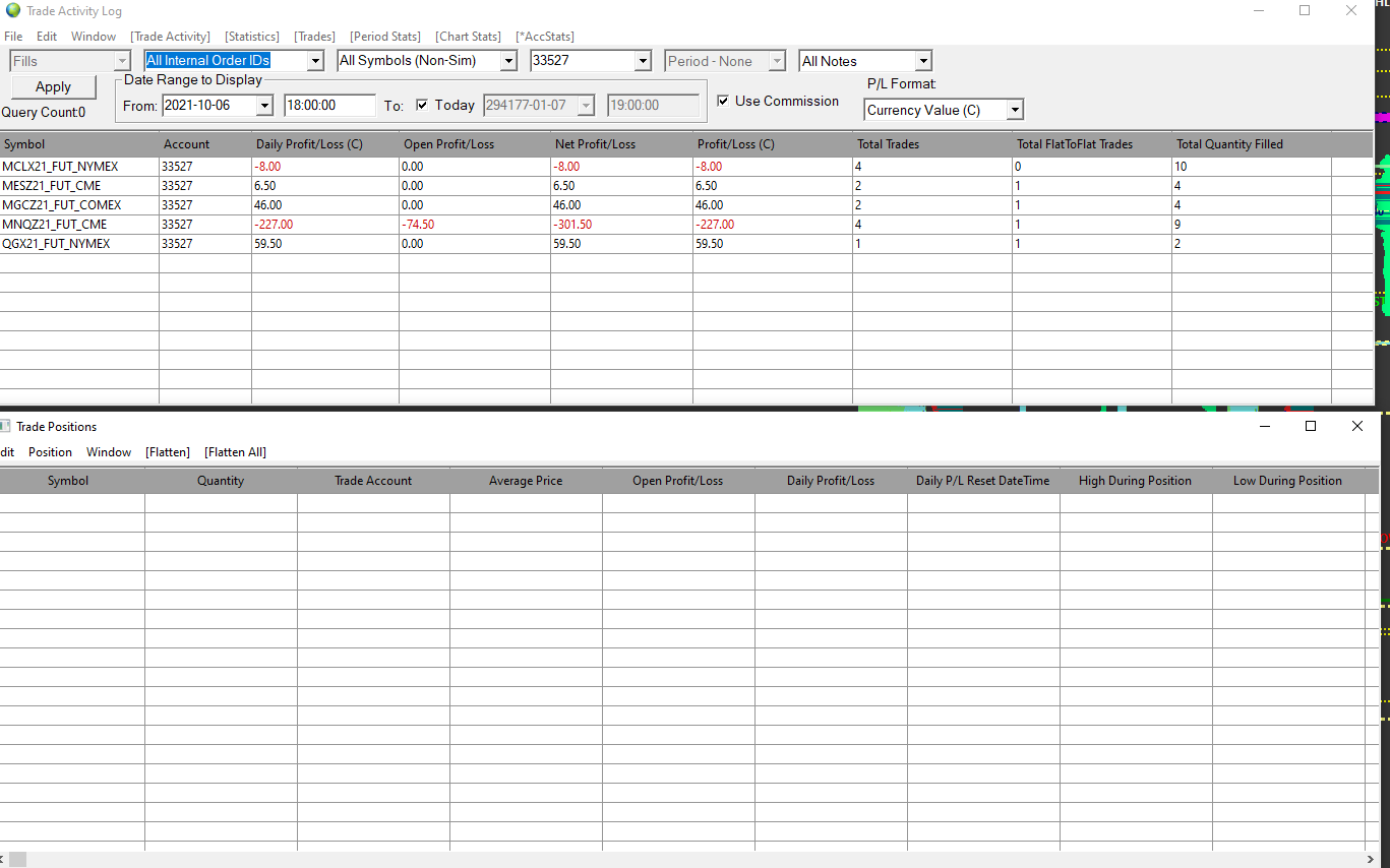 There is no problem here. When determining your Positions you must only be looking at the Trade >> Trade Positions Window. The Account Statistics tab of the Trade Activity Log simply utilizes order fills and if there are any missing fills, or the starting fill is not really the start of a position for a particular symbol, then what it will show is not accurate. Refer to: Trade Activity Log: Open Quantity Field Calculation Method Sierra Chart Support - Engineering Level Your definitive source for support. Other responses are from users. Try to keep your questions brief and to the point. Be aware of support policy: https://www.sierrachart.com/index.php?l=PostingInformation.php#GeneralInformation For the most reliable, advanced, and zero cost futures order routing, *change* to the Teton service: Sierra Chart Teton Futures Order Routing Date Time Of Last Edit: 2021-10-07 14:28:31