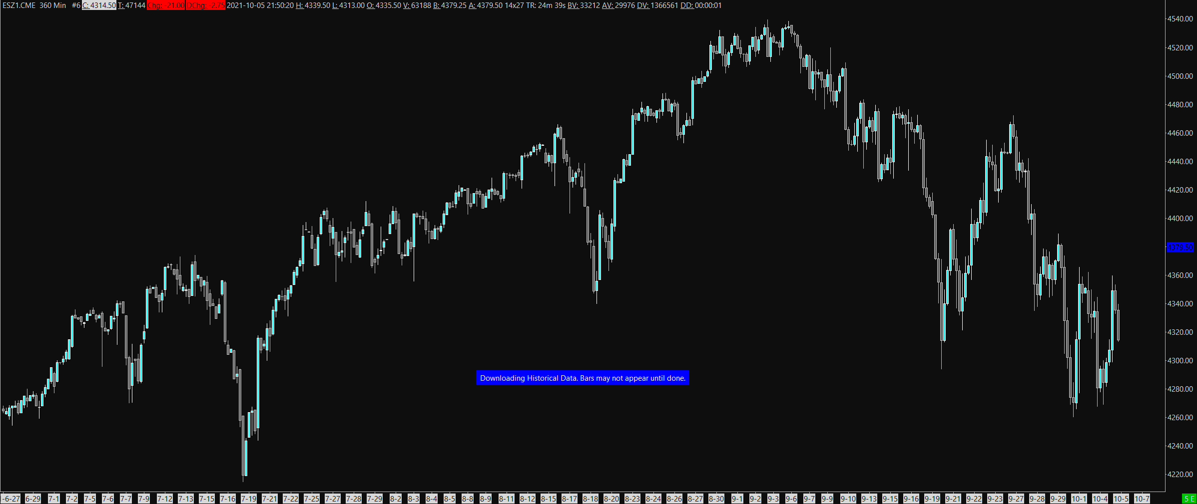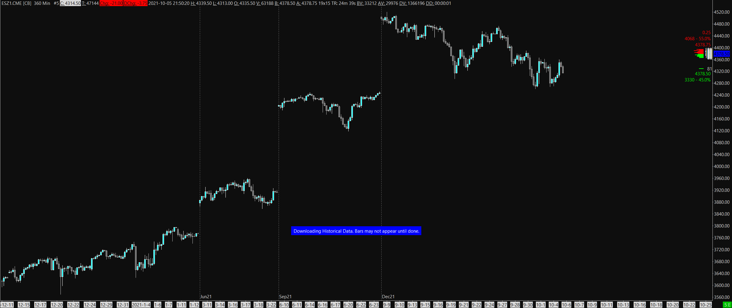 So I made the jump to SC early this week and unfortunately I still can not get reliable data for the charts. It's specifically /ES. And I've done everything I know how to independently but today I'm throwing in the towel. I'm using Rithmic with Denali as a back up and Over the past few days I was getting charts with large chunks of data missing. Specifically in ES around the time of contract roll. From about 09/10 till now there would either be very large gaps on time charts or extremely large bars in tick charts. I searched Youtube, Futures.io, and obviously here. I went through the entire troubleshooting post and yesterday/last night/into today i thought i had it figured out. So, a couple things on my end. MY internal clock for my computer was off by about .5 on average. Ran as admin and it fixed it. Second is I think there's some sort of miscommunication between SC and Rithmic on.. something, i'm not sure where. Again, i've gone through and reversed and gone through all the trouble shooting steps for days now. Today at around 14:00 my ES charts just stopped updating. This was on both NQ and ES. Last night/this morning my work around was literally having to manually, utilizing the 'Delete and download' and 'edit/delete and download', load in either days or weeks at a time. It's almost as if the files or packets or wherever were being stripped off because I was importing too much data at a time. Ok, noted. But now even when trying to download anything it's just getting stuck on "downloading historical data. Bars may not appear until done". The current /ES chart looks as such - http://www.sierrachart.com/image.php?Image=1633725104496.png Obviously something is getting confused around contract roll. But this is not consistent. And it's not consistent across markets either. As i can go into file - upload intraday chart and then get this: http://www.sierrachart.com/image.php?Image=1633725261523.png That SS also has 'show contract roll' dates. What moved the needle for me last night was actually disabling the disabling the custom symbol settings function in the global symbol settings. I reenabled it again after i started having issues and it sent the message log into a flurry of activity. But now i'm back to square one. And again, the issue currently is i'm stuck on "downloading historical data". I was/am using 'continuous futures contract - data rule rollover, back adjusted' as that's what got me some progress earlier in the week. But, now when I try and reload intraday data the above happens. It seems as if some of the data is getting corrupted coming across from Rithmic. Am I on the right track? I've abstained from playing around in the contract settings in global symbol settings as of yet. But i have a feeling one simple thing there will probably alleviate most of this. I'm pretty depserate for help on this because i want to use SC to trade and i was out almost the entire back half of this week because i was not confident executing trades through the platform, even if it is through a funded trader program. Another note is that i've been having consistent issues with Rithmic and SC talking when it comes to orders as well. With Rithmic refusing to update orders, or even show correct values. That portion is going both ways, as SC is getting out of sync with the actual order flow. Help, please. |
