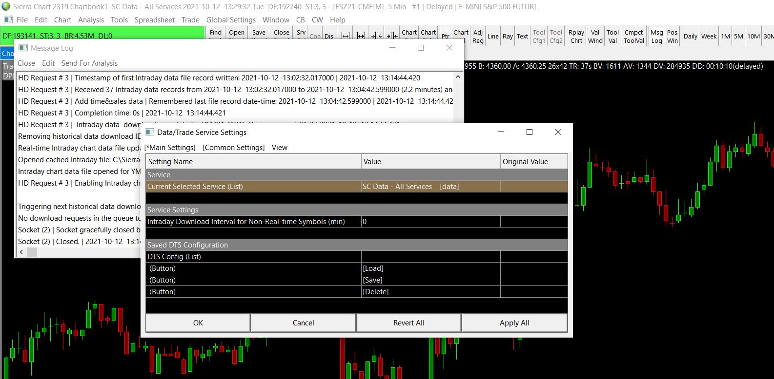For complete details about real-time market data, refer to this page: Real-Time Data What futures trading/brokerage service do you use? For the reason why we ask this question, refer to: Real-Time Exchange Data Feeds Available From Sierra Chart: Understanding and Accessing Data From the CME, CBOT, NYMEX, COMEX Exchanges (Understanding and Accessing Data From the CME, CBOT, NYMEX, COMEX Exchanges) Sierra Chart Support - Engineering Level Your definitive source for support. Other responses are from users. Try to keep your questions brief and to the point. Be aware of support policy: https://www.sierrachart.com/index.php?l=PostingInformation.php#GeneralInformation For the most reliable, advanced, and zero cost futures order routing, *change* to the Teton service: Sierra Chart Teton Futures Order Routing Date Time Of Last Edit: 2021-10-12 13:34:50
