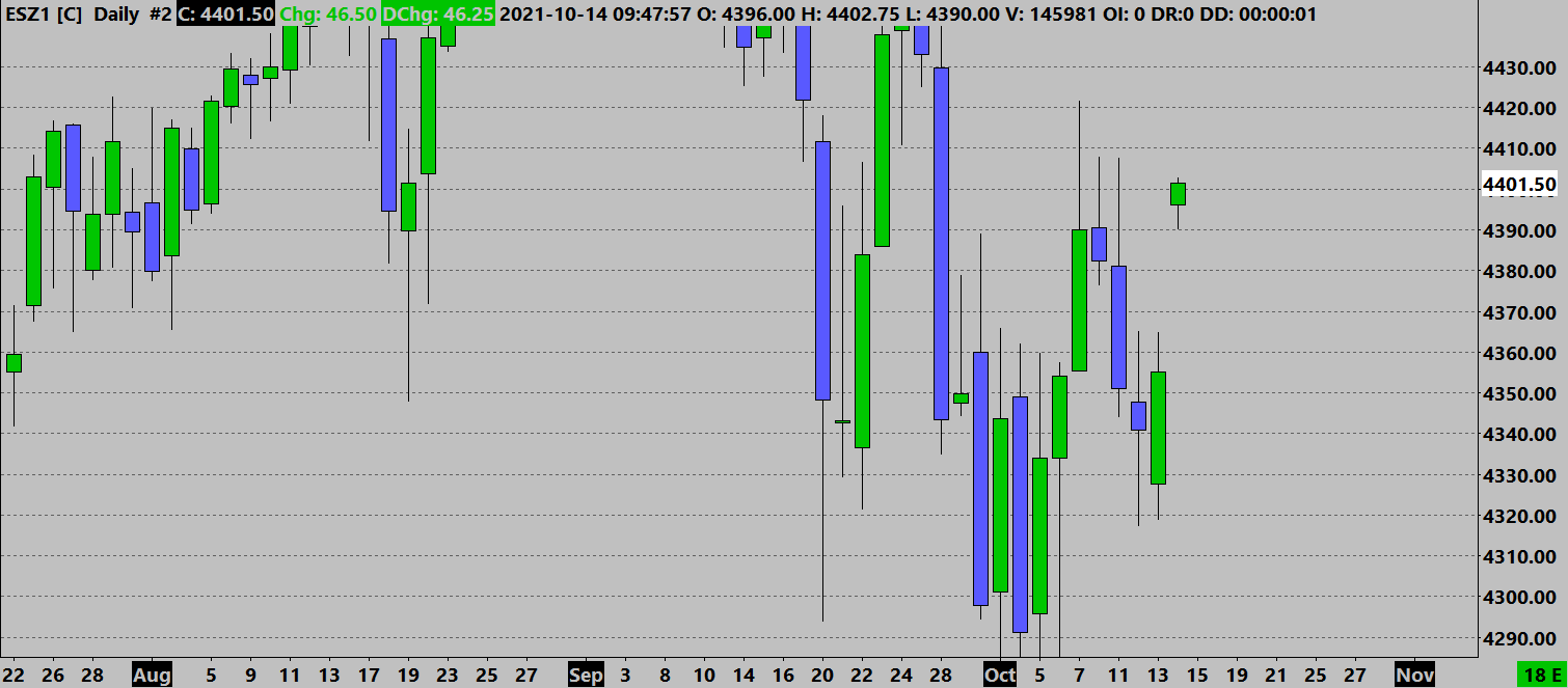 I use a 5 minute chart, daily continuous, and weekly continuous. The 5-min and weekly have no problems; the daily chart is showing a very small range on today's candle (actual range so far is 4354 - 4401.75). See chart here: http://www.sierrachart.com/image.php?Image=1634219279550.png I have clicked Edit > Delete all data and download more than once. I have recreated the Daily chart more than once by first duplicating hte working charts and changing to daily. The chart is still incorrect, although the it is reflecting price changes (it started as a horizontal line, then progressed to a doji, now reflects a small range). Thanks in advance for your help. |