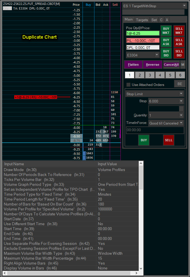 It looks like your setting for the Volume Graph Period Type is One Period from Start Time to End Time. If this is the case, then that is the problem, as that particular option does not calculate properly on the Trading DOM. We have updated the code to ensure that if selected, then it will change to the One Period from Session Start Time to End, when OK, or Apply is selected. This is the current method for any of the other options that are not available on the Trading DOM. This change will be in the next Pre-Release (v 2323). If you have a different Graph Period Type selected, then let us know and we will look into the issue further For the most reliable, advanced, and zero cost futures order routing, use the Teton service: Sierra Chart Teton Futures Order Routing |