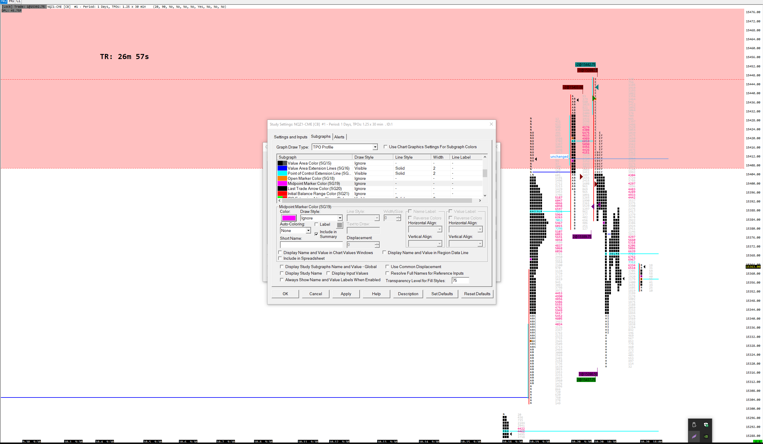 Hi, is there any opportunity to change the "halfback" (highlighted midpoint marker of profile) in any other draw type, like the subperiod midpoint marker letter? (which I really like) In a bigger big picture I can't identify the block markers, like open of the session, half back, etc. Of course, I know about the possibility of OHLC lines. But can't help myself and the more studys I load the more unstable it runs. (you guys know me..I love sierra chart.) THX for any advice to get this thing finally solved. PS: thank you so much again for the best tpo charting tool in the world! regards Marc Date Time Of Last Edit: 2021-10-20 23:22:33