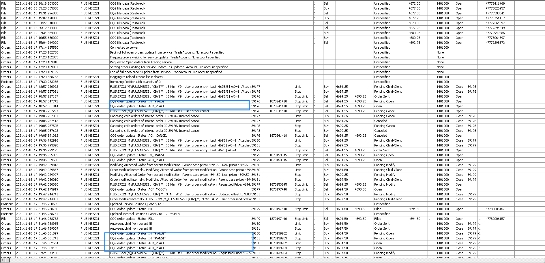 Those orders you have highlighted were submitted by you in chart #9.