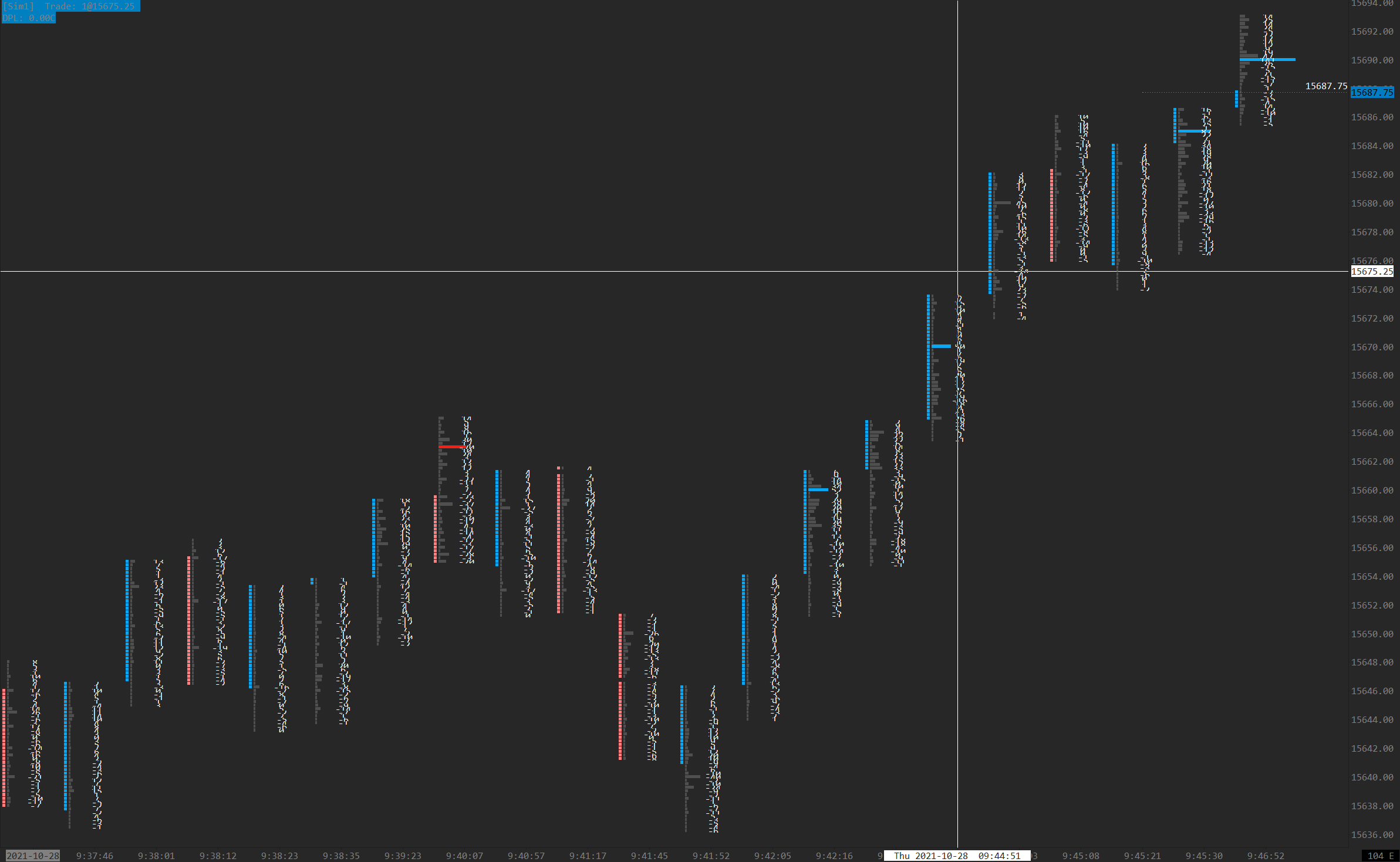 I have a 10 tick range chart showing number bars with delta highlighted over a certain threshold. Is there a way for me to overlay those highlighted delta values onto a tick chart? http://www.sierrachart.com/image.php?Image=1635428838538.png |