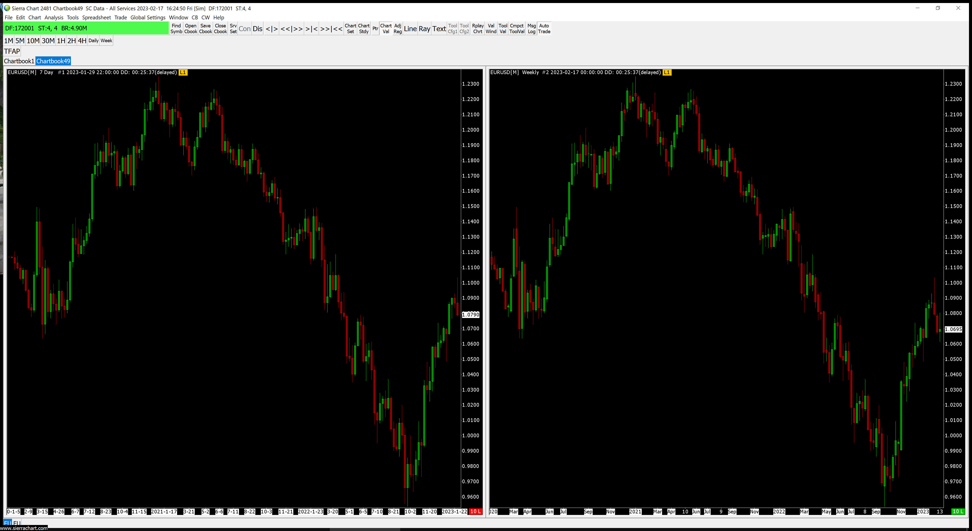 Could I get your advice on what to do with historical charts? Inverted charts still display this problem, despite the fact that historical data can not be downloaded as tick data, naturally. Therefore I can use daily, intraday, charts, which is fine. But for weekly, there is a discrepancy. The closest I can get are 5-day charts, but these are not true weekly charts? What settings should I use to mimic true weekly charts (intraday)? Then the true weekly charts (base historical data), when inverted, display the same problem as above. Date Time Of Last Edit: 2023-02-07 10:45:21