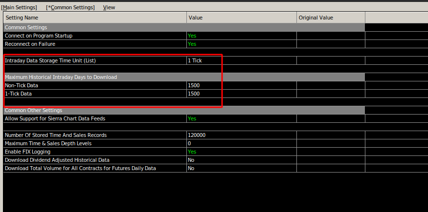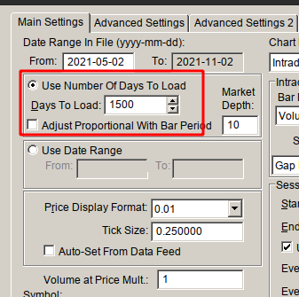 It depends on how far back you are going. Refer to the information here: Sierra Chart Historical Data Service: What is Included Also, make sure you Intraday Data Storage Time Unit is set to 1 tick. Refer to the following: Data/Trade Service Settings: Intraday Data Storage Time Unit (Global Settings >> Data/Trade Service Settings >> Common Settings >> Common Settings) For the most reliable, advanced, and zero cost futures order routing, use the Teton service: Sierra Chart Teton Futures Order Routing |