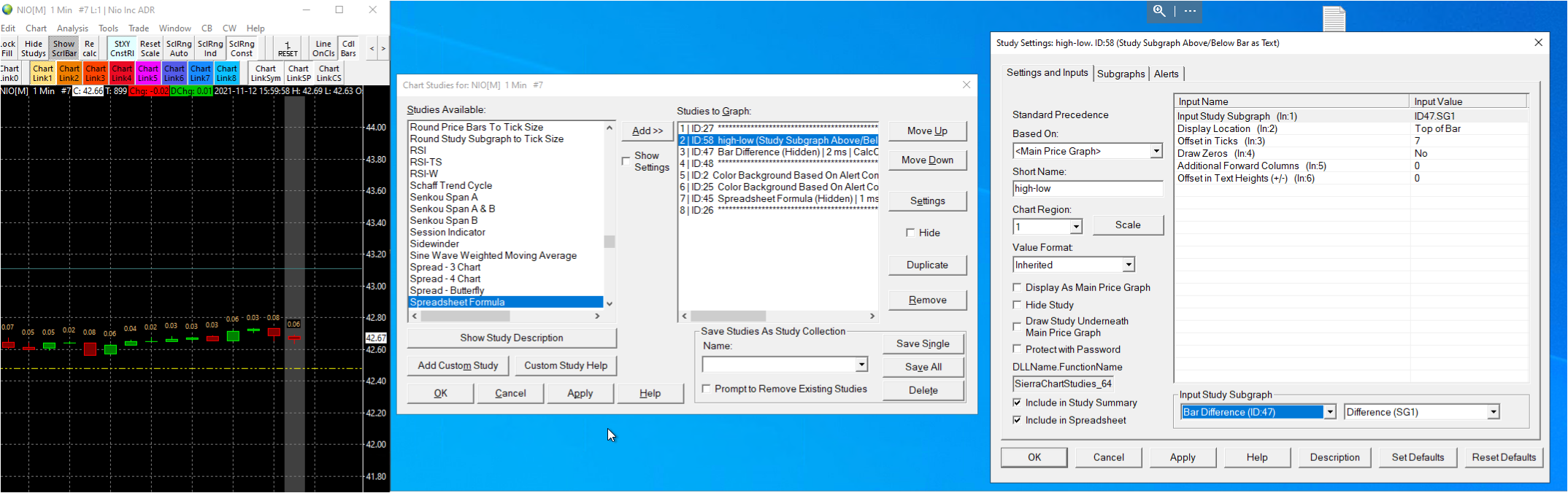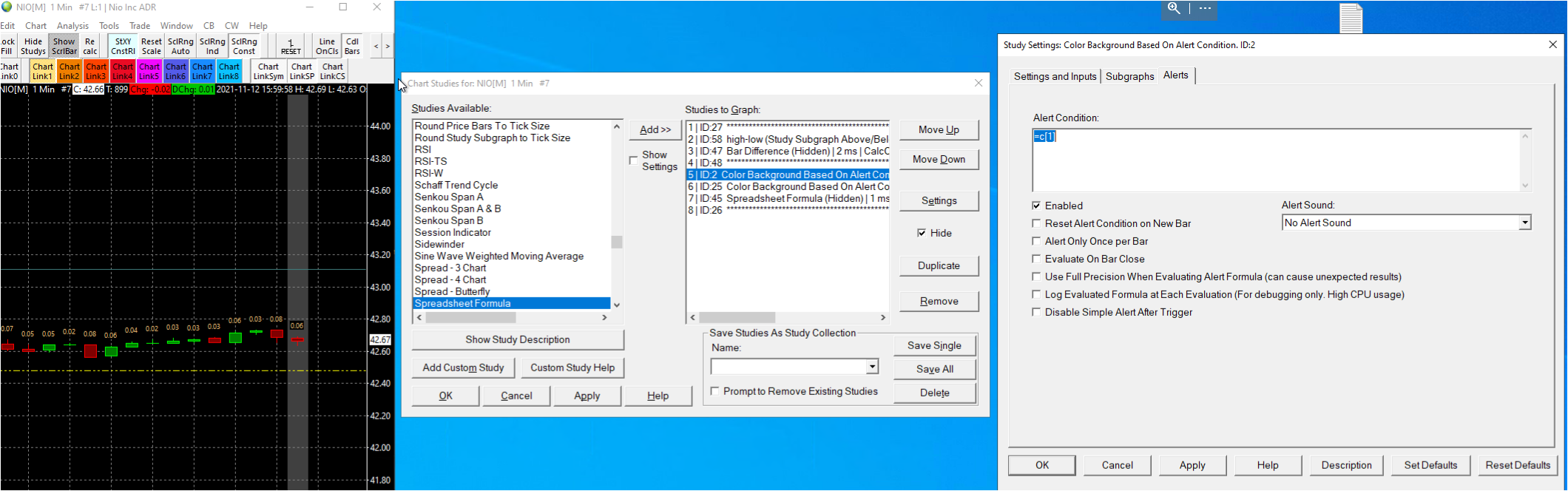 Hello, it doesn't work for me, because u ask for me to reference to the spreadsheet formula study,but my "Study Subgraph Above/Below Bar as Text study" study (id58) is already refer to another study (bar difference, id47),see in pic number 2 in the "spreadsheetformula" study i put the equation as u told me see in pic number 1 *id2 - where ID2 is the hidden color background study from post #2 see in pic number 3 Explanation: i want to see only the last bar data from "Study Subgraph Above/Below Bar as Text study" that refer to another study (bar differnce). what can i do to fix it ? regards |