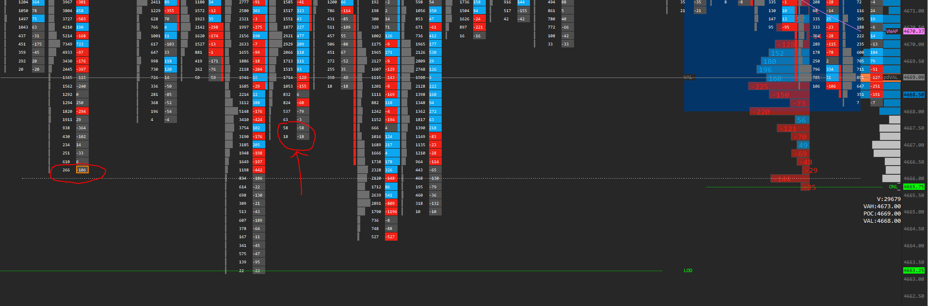 To clarify, is this what you want?: - mark where the ask vol is 0 at the low and 0 at the low + 1 tick - mark where the bid vol is 0 at the high and 0 at the high - 1 tick |
